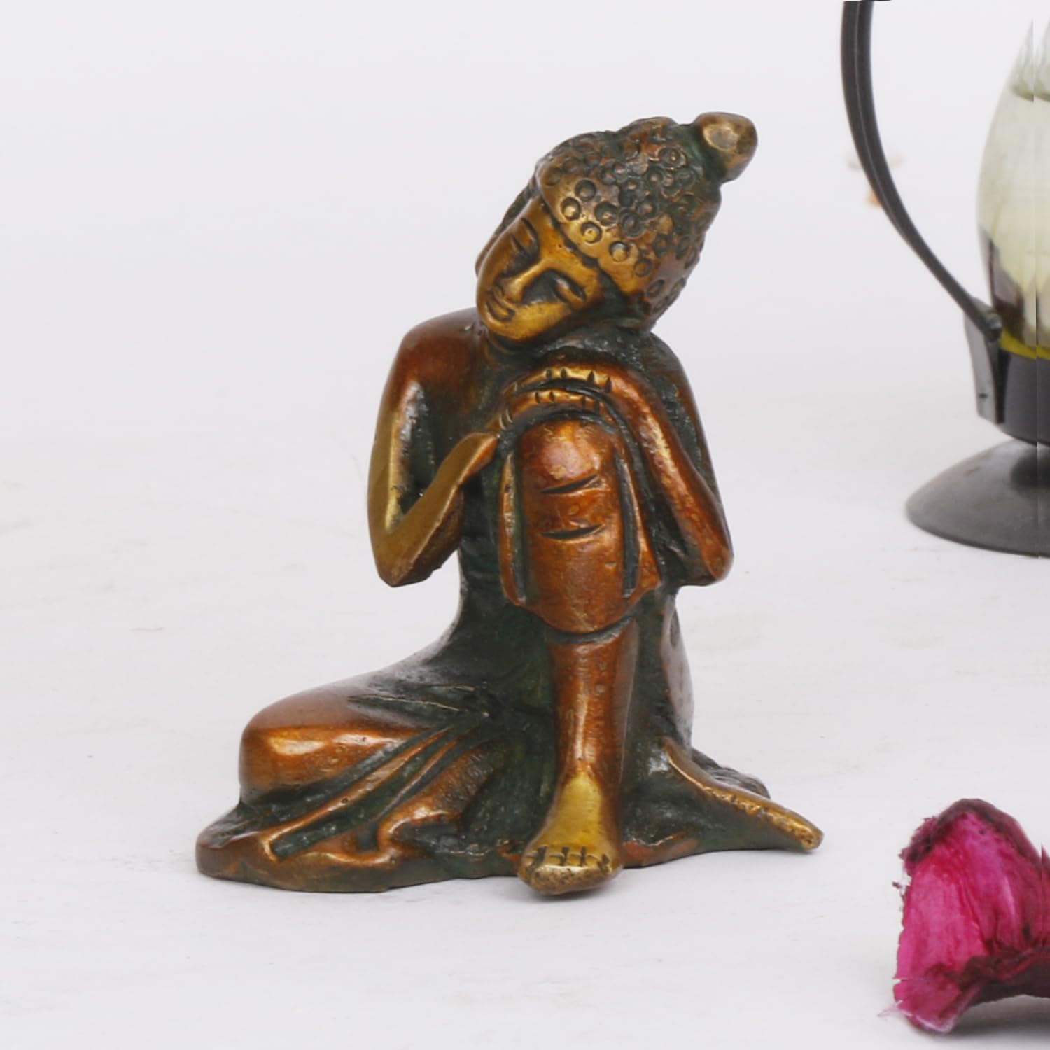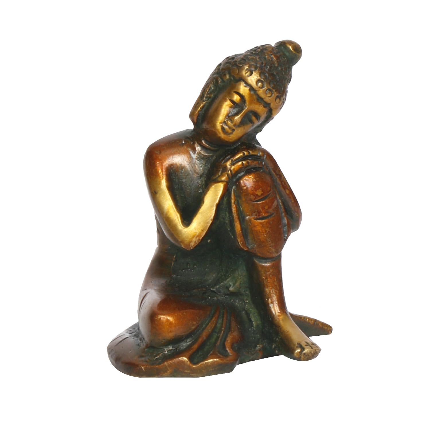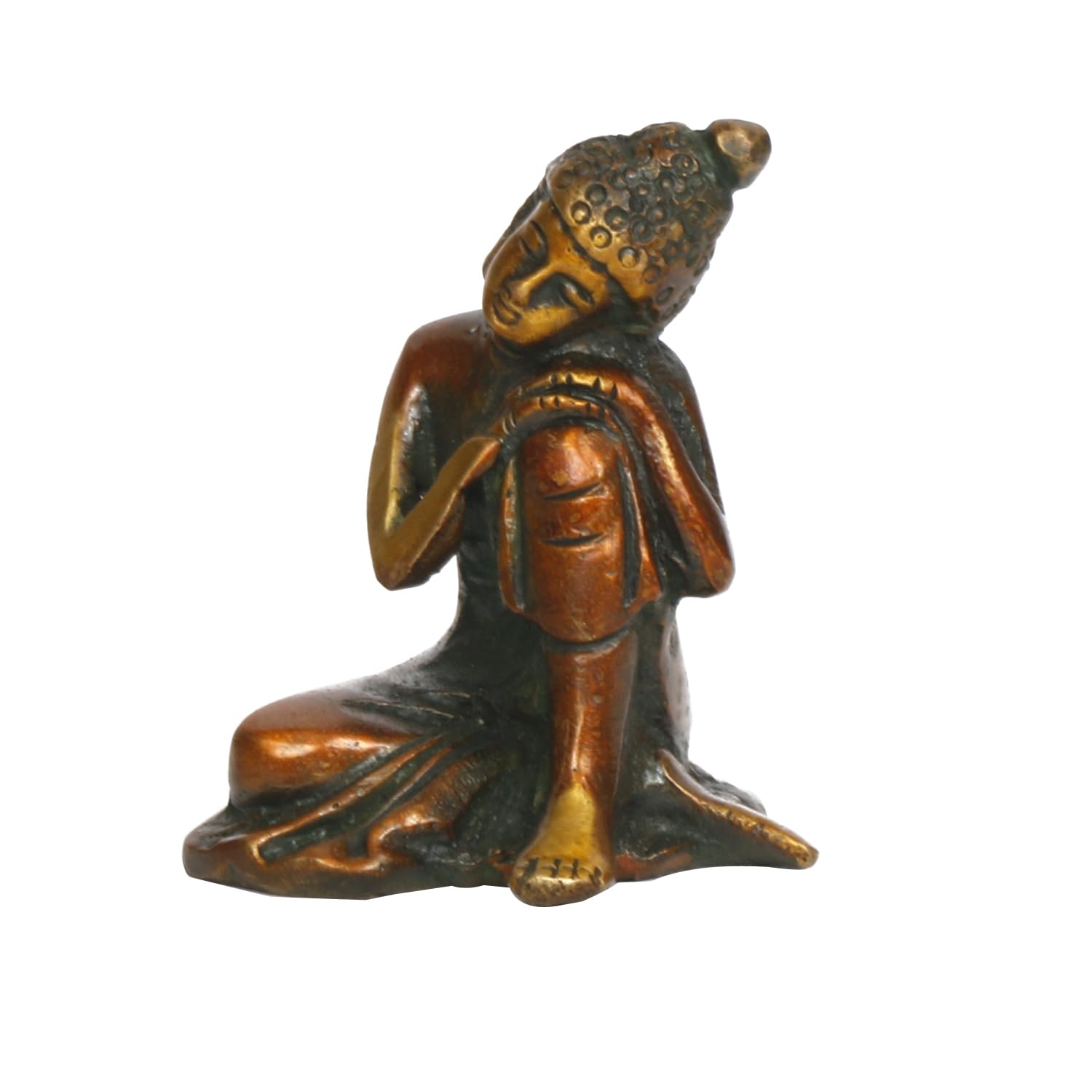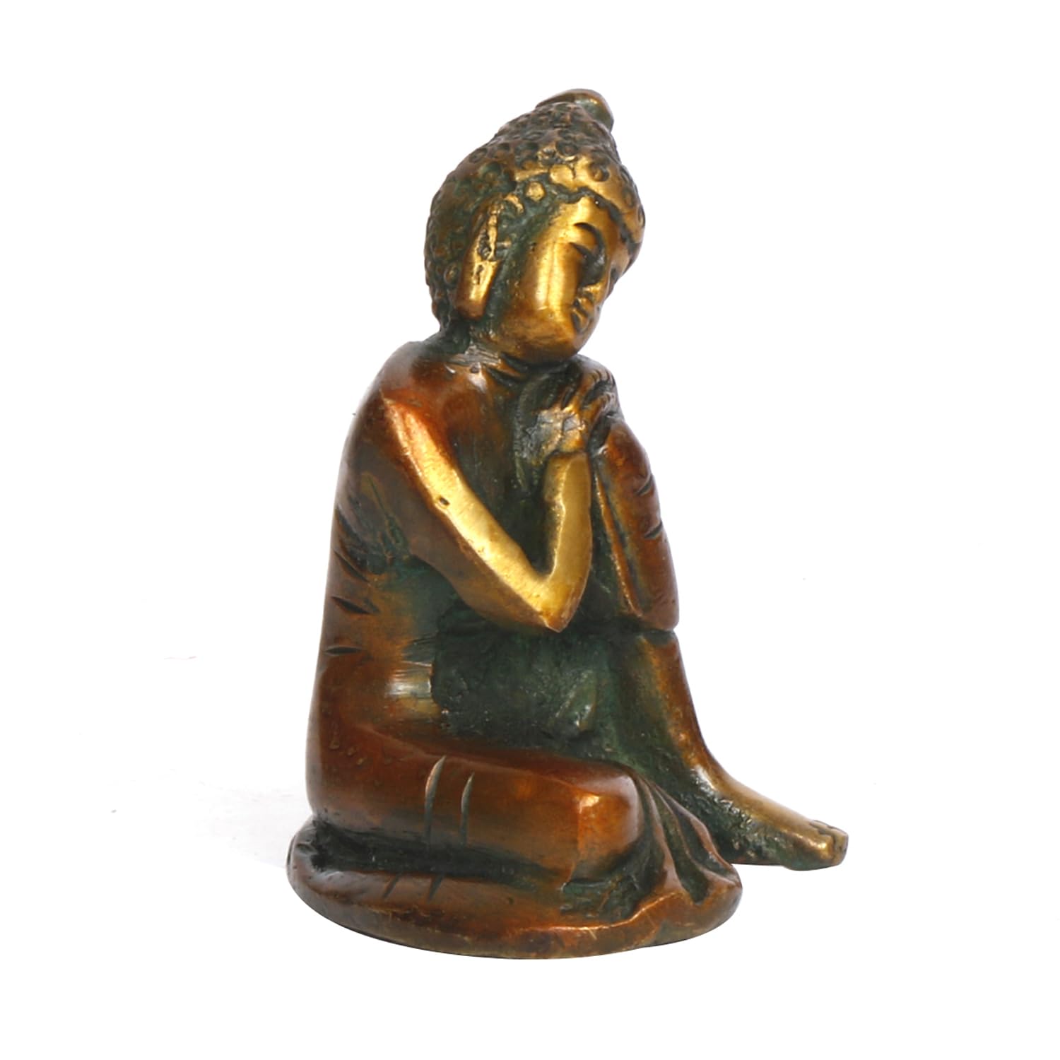 BUDDHA TIBETAN RELIGIOUS GOODS Brass Thinking Buddha Idol