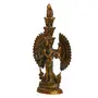 This handcrafted antique idol of Avalokiteshvara The idol is polished to give it an alluring antique look. It is also an ideal gift for your friends and relatives Avalokiteshvara is the earthly manifestation of the self-born eternal Buddha Amitabha whose figure is represented in his headdress and he guards the world in the interval between the departure of the historical Buddha Gautama and the appearance of the future buddha Maitreya. Avalokiteshvara protects against shipwreck fire assassins robbers and wild beasts. He is the creator of the fourth world which is the actual universe.