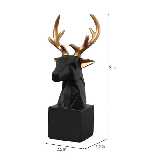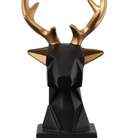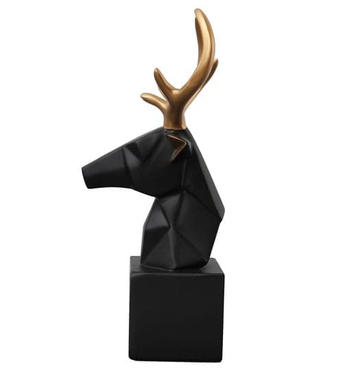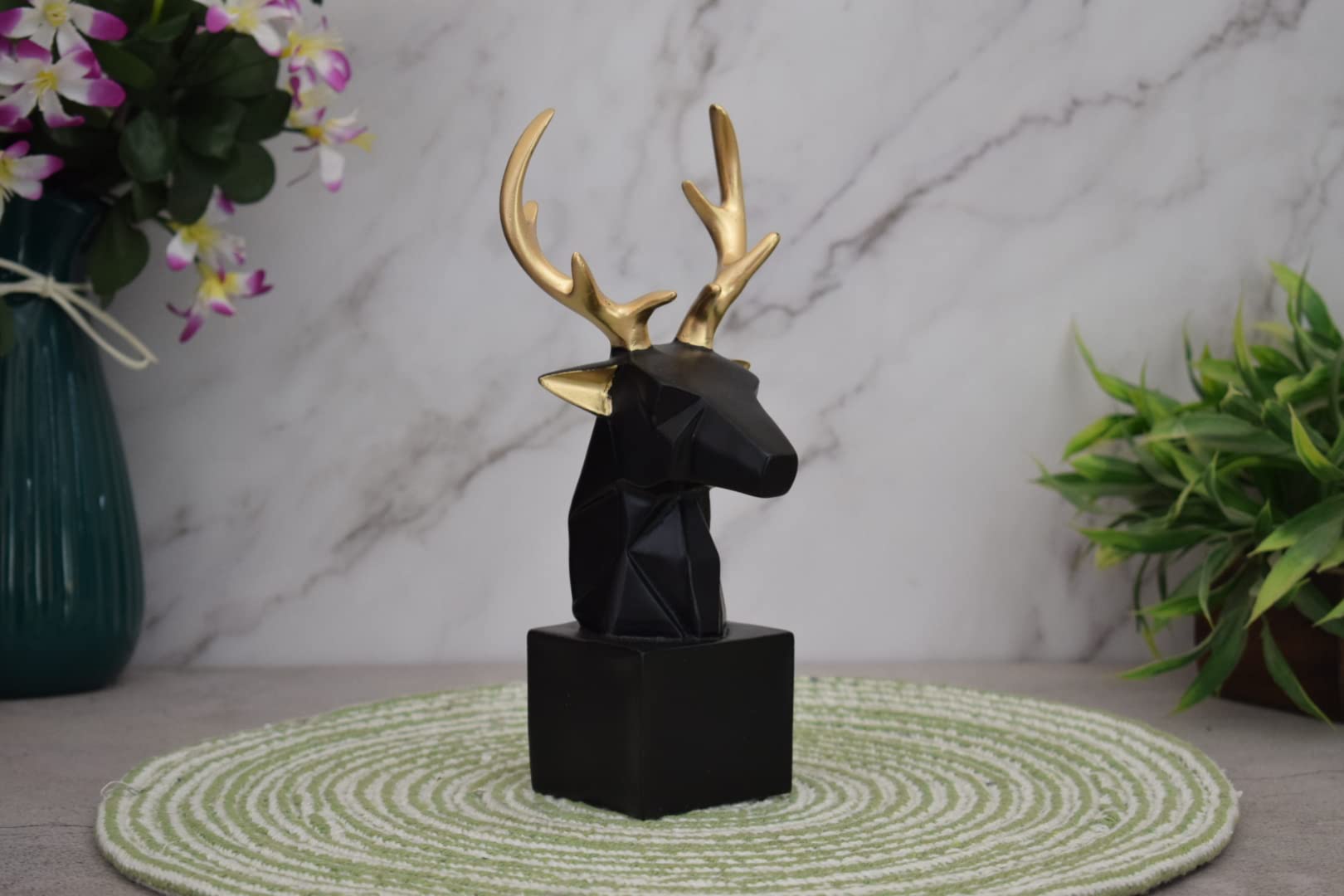 HomeHomeHome AccentFigurinesCHURU SANDALWOOD CARVED Deer Head Statue Showpiece Sculpture Ornament Figurines for Home Living Room Decoration Table Top Craft Geometric Animal Figurines Gift Item (22.8 cm x 5.5 cm Black1)
