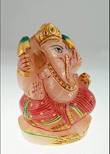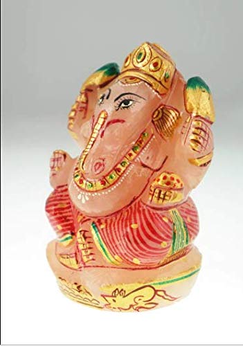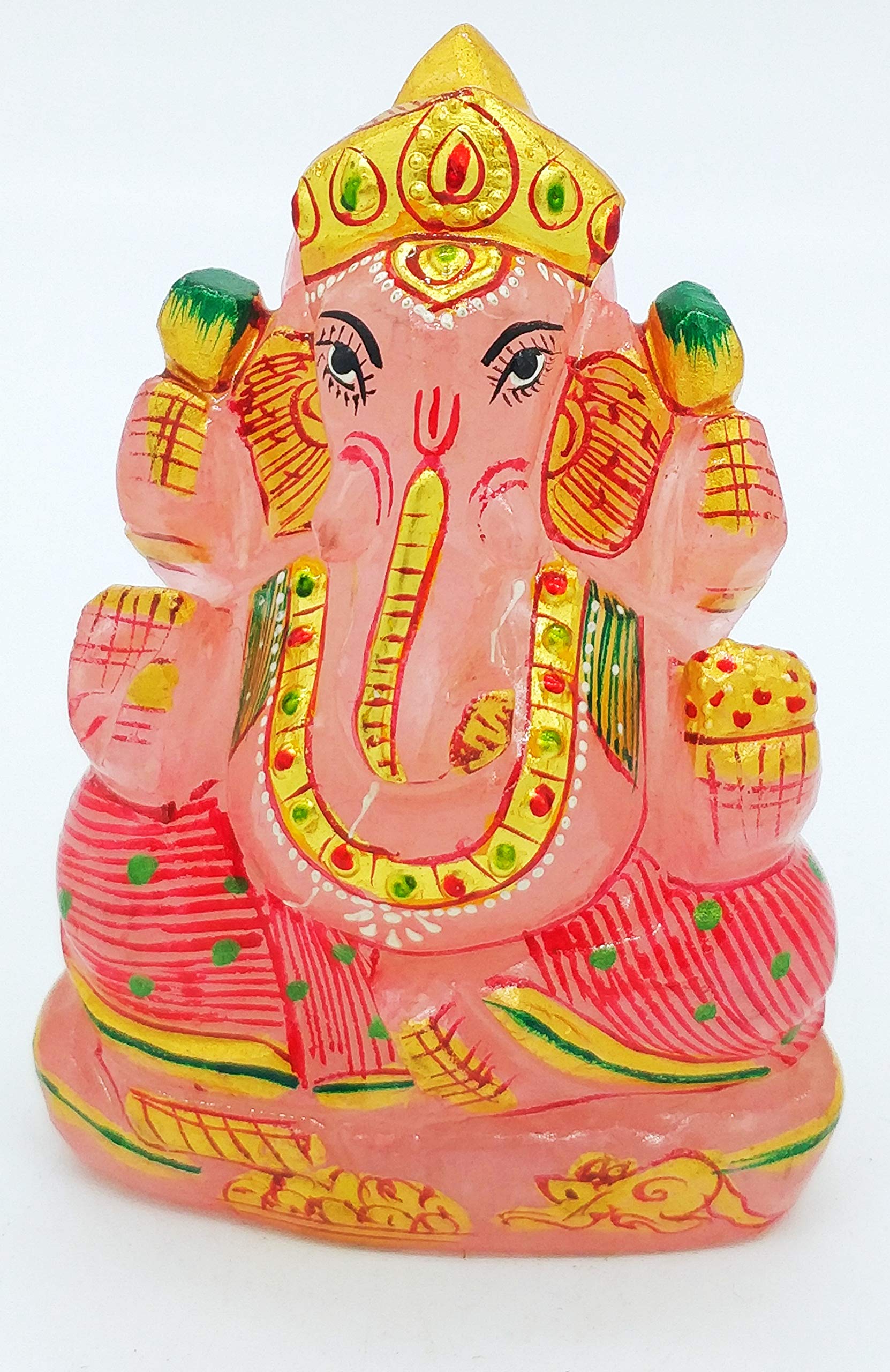 CHURU SANDALWOOD CARVED Handcarved Rose Quartz Gemstone Lord Ganesh Ganpati Statue Murti Spiritual Decorative Stone Figurine for Reiki Healing Home Dcor Pooja Car Dashboard (120-130 Gram)