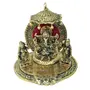 HomeHomeHome AccentFigurinesCHURU SANDALWOOD CARVED Oxidised Metal Lord Ganesha with Goddess Ridhi and Sidhi Idol Sculpture Statue for Puja Vastu Figurine Decorative Showpiece (16 X 14 X 20 cm Golden)