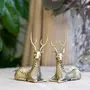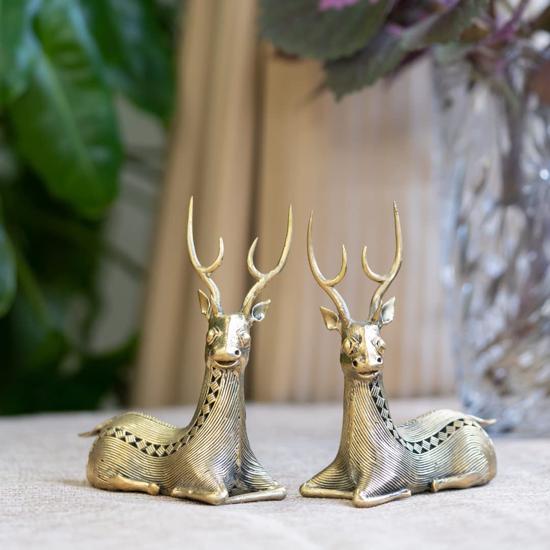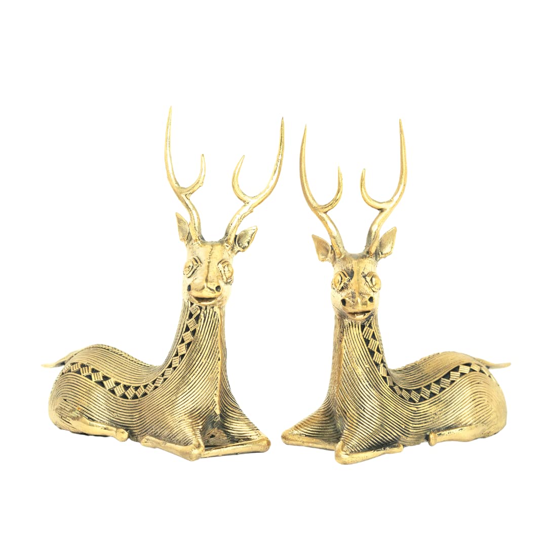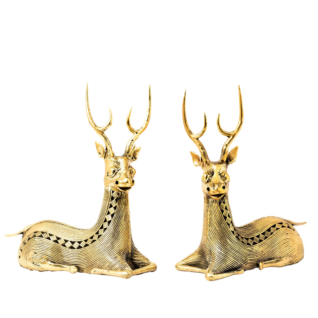 In Buddhism the deer symbolizes harmony happiness peace and longevity. That's the kind of world we believe in too! The delicate and elegant metal deer figurine has a vintage look. The figurine depicts the graceful animal in all its glory symbolizing harmony happiness peace and longevity. It is intricately handcrafted by our tribal artisans practicing Dhokra art making it look like the real animal. This beautiful piece is made from brass metal and can brighten up any dull corner of your indoor or outdoor living spaces. This sculpture can make a thoughtful gift for a loved one as its intense look will surely be appreciated. .