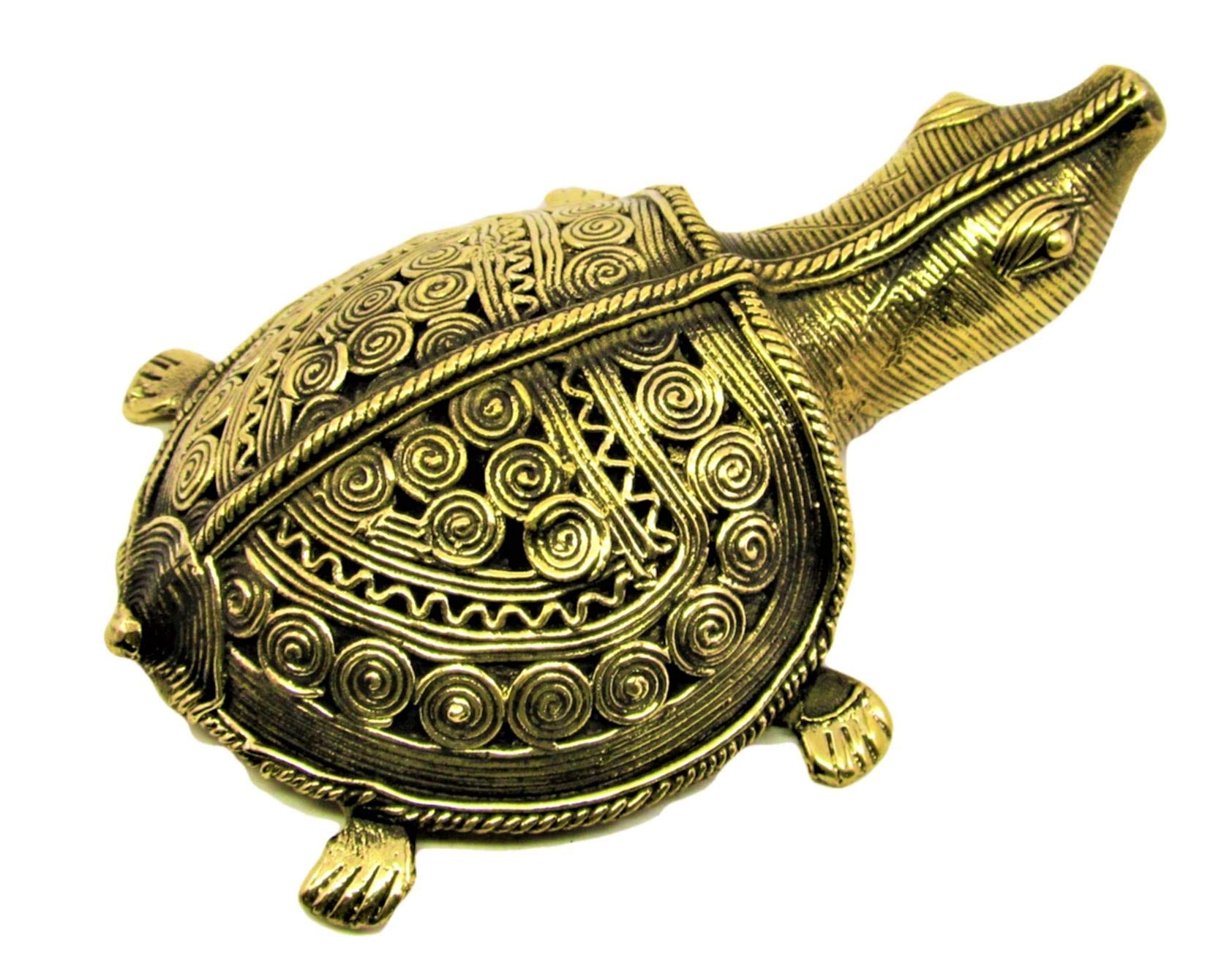 Traditional Dhokra metal casting is made of brass that gives antique look to the crafts with dull-gold metallic finish and becomes complementary for elegant interiors. The craft work evokes creativity in simplicity.