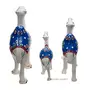 It is a traditional item made up of Paper mache material. This is an Indian handmade 3 Elephant handart. Each elephant has been handcrafted hand printed with mineral beads. This Decorative showpiece gives a regal touch to your home with this patch and embroidery work. Highlighting the fine and intricate detailing this beautiful vintage art surprise for loved one; A Beautiful Piece of True Indian Art for Living Rooms A Nice Gift Item For Indian Art Lovers.About Paper Mache Crafts:Paper Mache Crafts is a traditional craft and is passed on from one generation to next generation in a family.it is still made by hand in small home shops where the whole family sit together and engage in the art of making Paper crafts.Making paper Mache is simple but takes a lot of time and labor. In the traditional method of making paper Mache the waste paper is soaked in water for a few days till its start getting disintegrated. The excess water is then drained out and the soaked paper rice straw cloth and bonding agents are mixed well to get a pulp. This pulp is now placed in mould and left for three or more days to dry. After it is dry the shape is cut away from the mould into two halves and then glued again. It is then coated with a layer of glue and gypsum and then made smooth by rubbing with stone or baked piece of clay. Layers of tissue are then pasted. A base color is painted on it and now it is ready for making design. The design is made with hand. Some part of design are raised a bit so as it to give dimension to design.