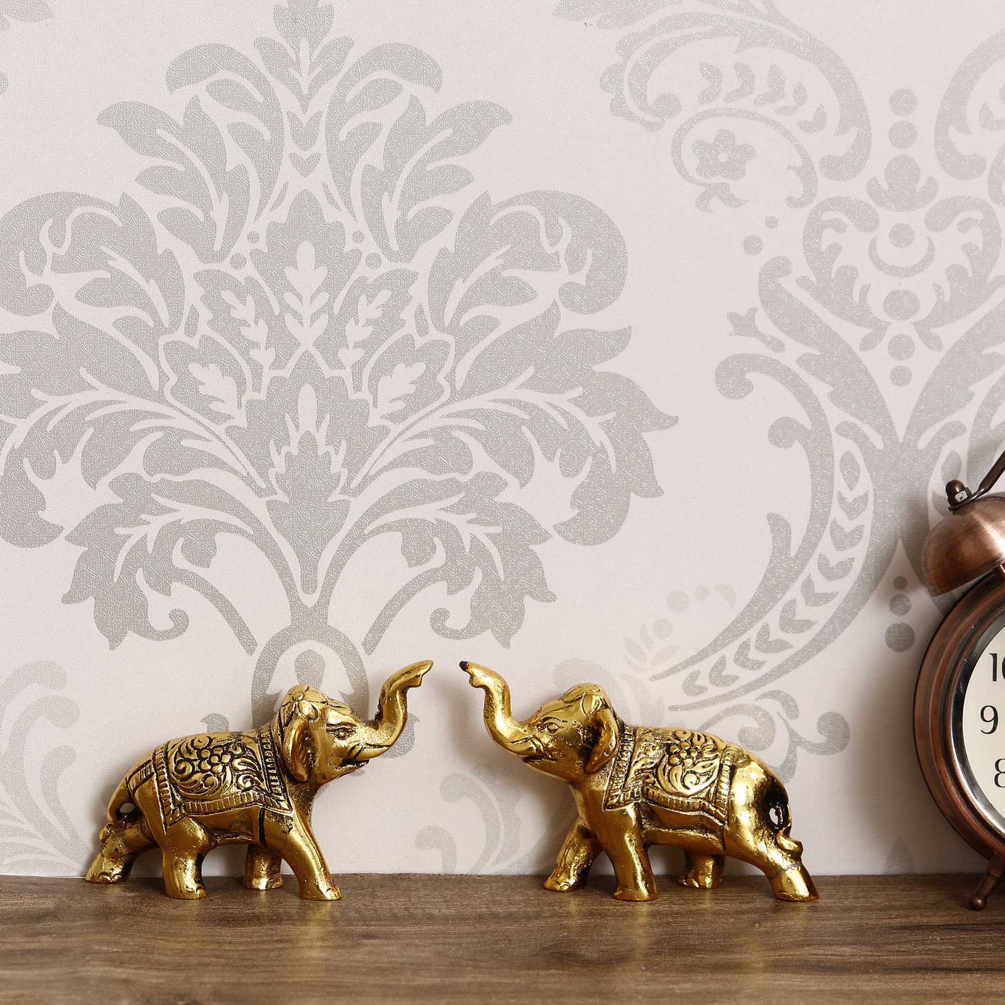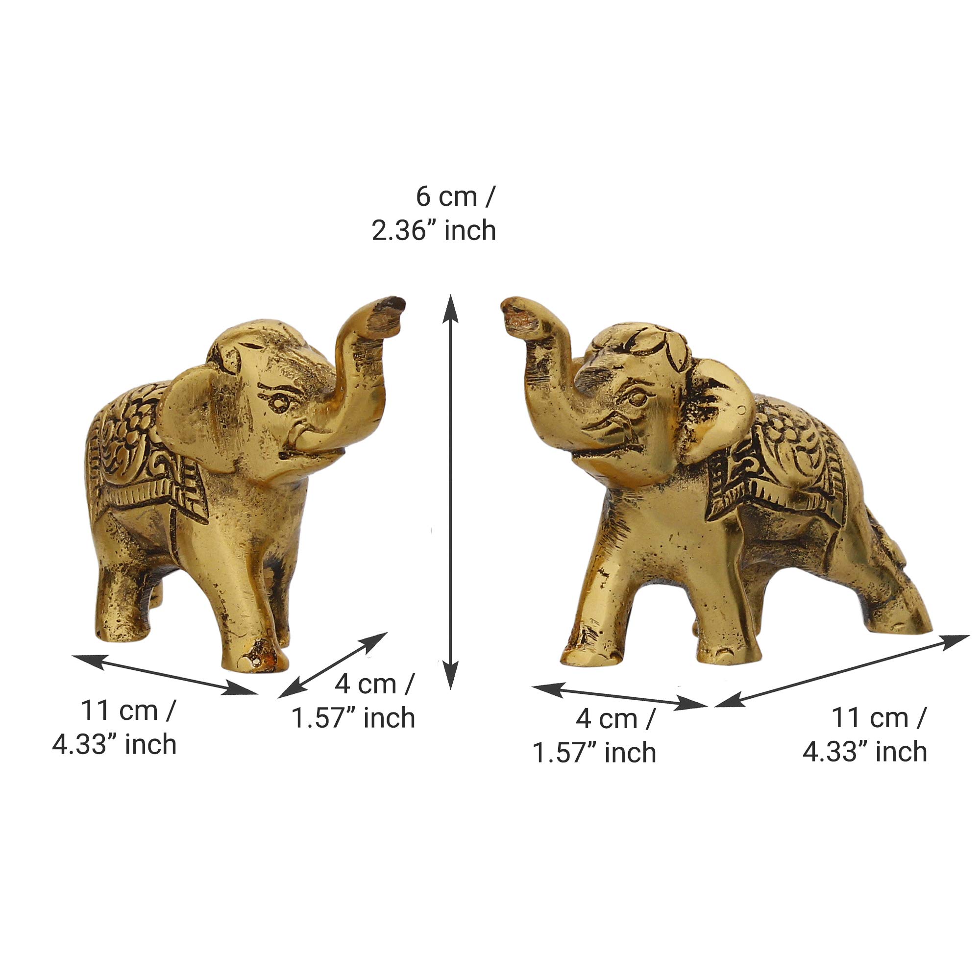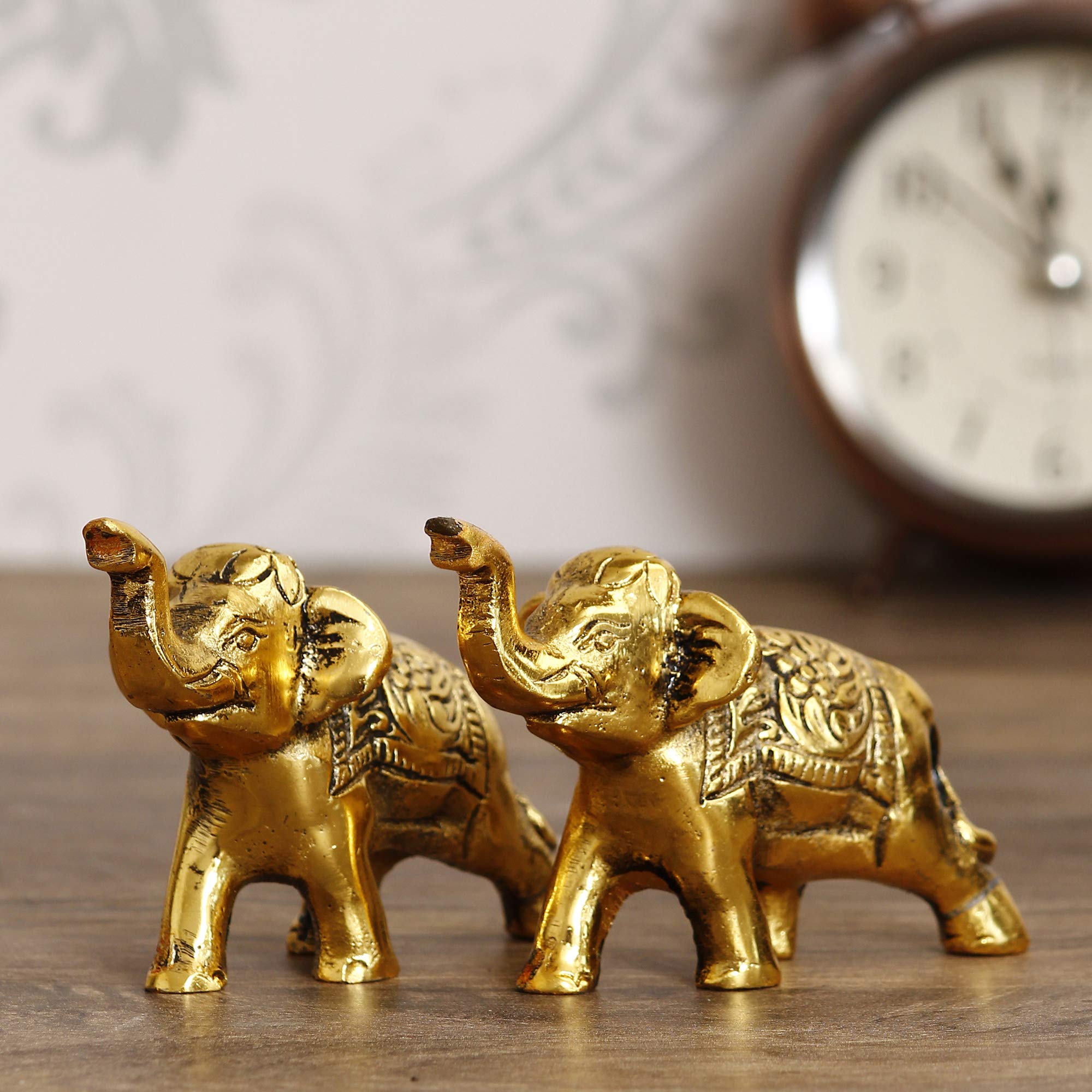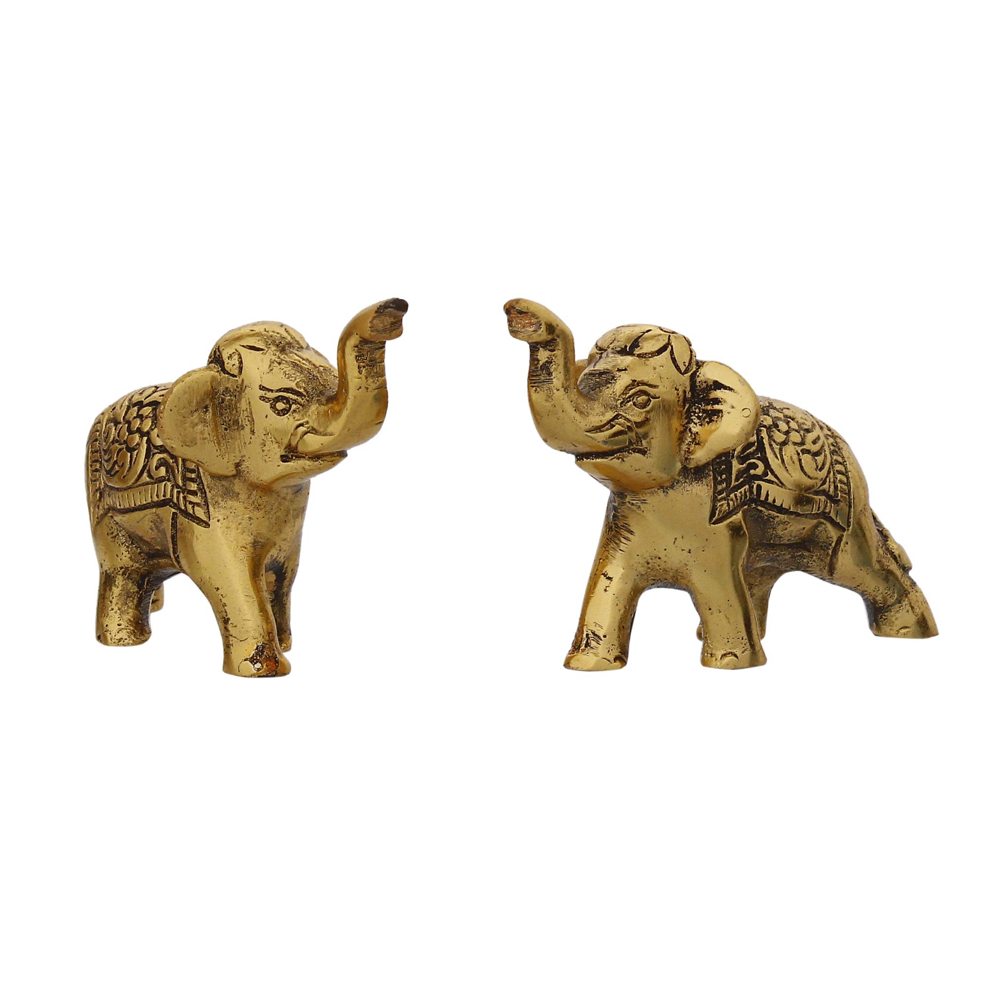 Elevate the look of your home decor with our stunning Set of 2 Golden Metal Elephants Statues! These Animal Figurines and Decorative Showpieces are handcrafted by skilled artisans at eCraftIndia business with love and care. Made from high-quality metal these elephant Sculptures are an ideal table decor item that is sure to add a touch of sophistication and class to your living room. Add a touch of exotic elegance to your interior space with our Set of 2 Golden Metal Elephants Statues! These exquisite Animal Figurines Home Decor pieces are made with premium quality metal and crafted by skilled artisans at eCraftIndia business. Whether used as a decorative item or as a statement piece these Animal Statues are sure to grab everyone's attention with their intricate details and mesmerizing golden finish.