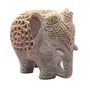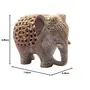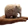 This Decorative 'must have' Showpiece Elephant is true form of fine Art produced by renowned Craftsman based in Agra India. It may not be very visible in Photos but there is a baby elephant carved inside the abdomen of larger one shown. This craftsman has done very minute yet clear details all over the Elephant. Please enlarge the pictures and look carefully at the forehead of Elephant and we are sure that you will appreciate the workmanship. This marvelous piece of art is carved from Single Piece of Stone and Hand Drilled by Artisans. It would definitely be unique home decor collection item and a perfect gift for any occasion. It is made of Soapstone (Similar to Marble but soft in nature) which is having Soap like soft feeling when touched. Size (Height x Length x Width) = 3" Inches x 3.5" Inches x 2.5" Inches and Weight of Elephant Approx 342 grams.