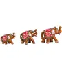 Extreme Creations Paper Mache Handmade Elephant Showpiece Figurine Set of 3 for Living Room Home Décor and Gift Purpose (Brown)