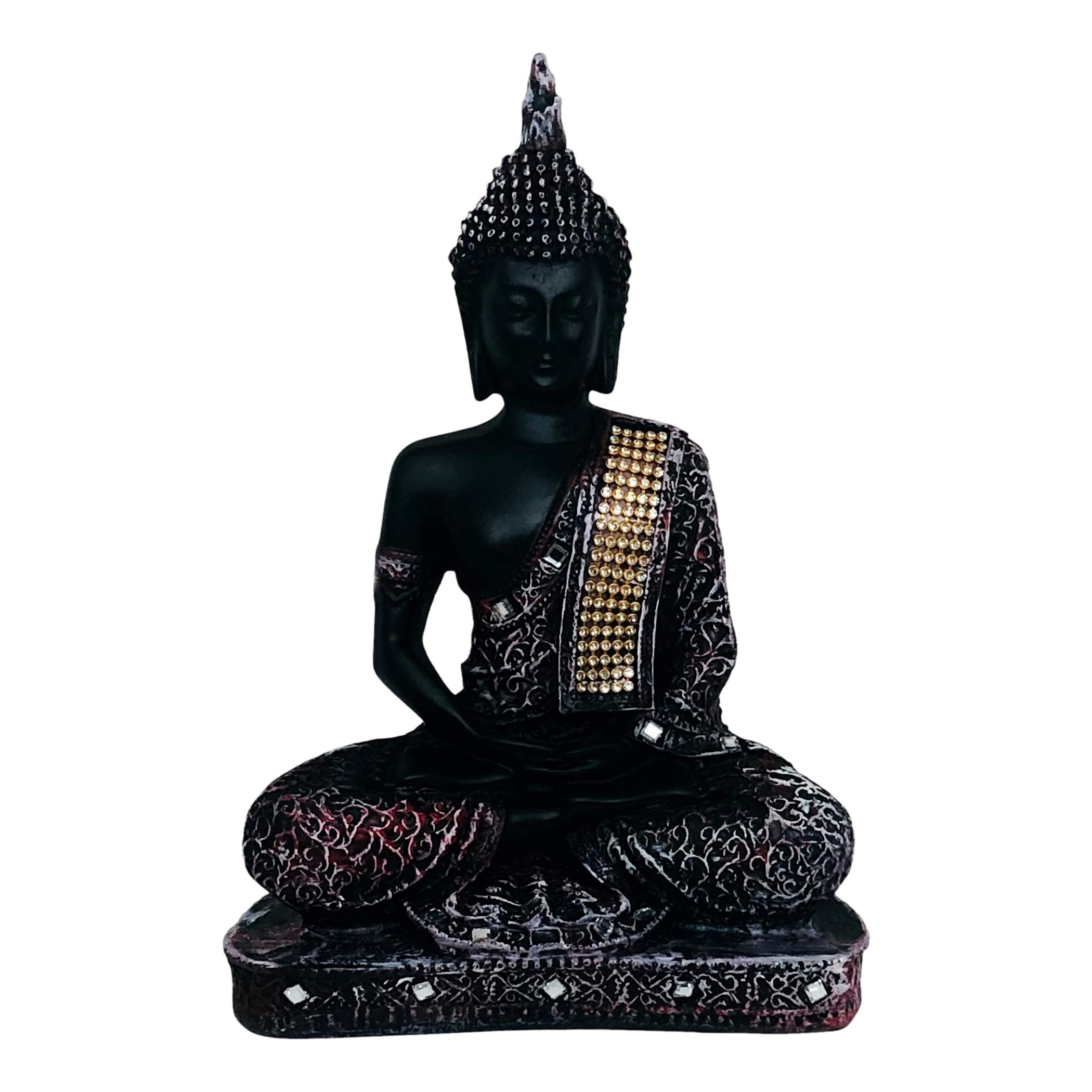 SHOPMEFAST Resin Lord Buddha Idol Sitting Statue for Home Decor (Red & Black, 1 Pc.) (BStatue-Red)