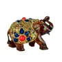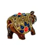 An elegant elephant statue. It symbolizes power wisdom strength fertility protection of the home and Antique style statue with the trunks facing upwards to represent prosperity good luck and success!! The cloak is finely Inlaid with beautiful colorful pat