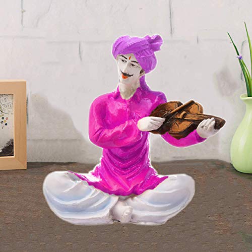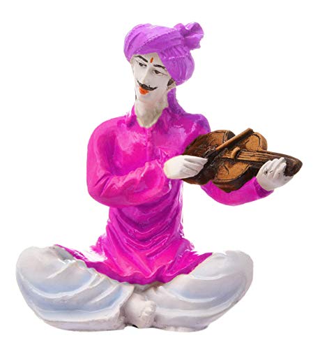 India Beautiful Hand Carved Rajasthani Men Playing Violin Polyresin Showpiece for Home Decor.