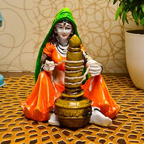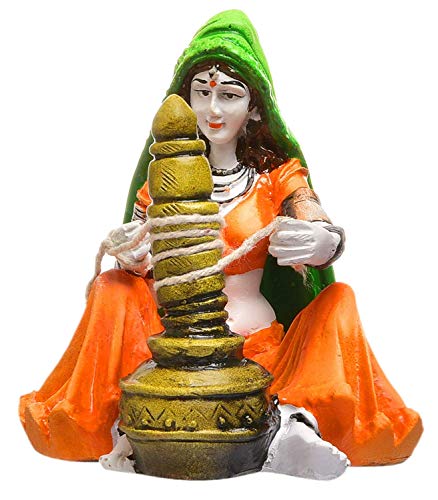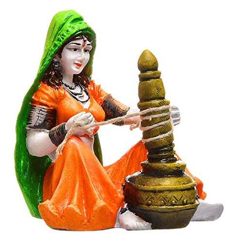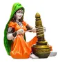 India Handcrafted Rajasthani Lady with Chaas Polyesine Idol Showpiece for Home Decor.