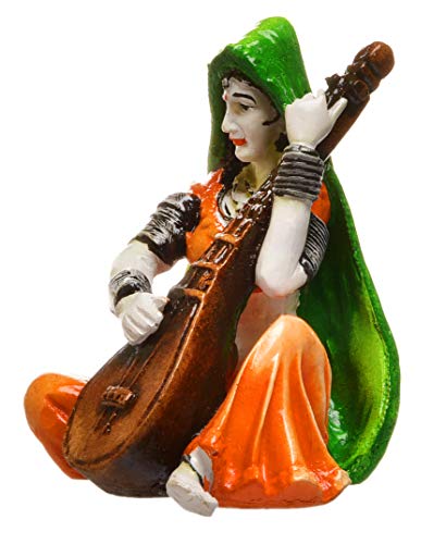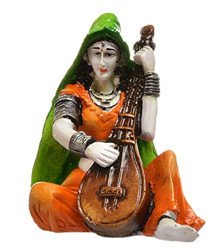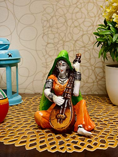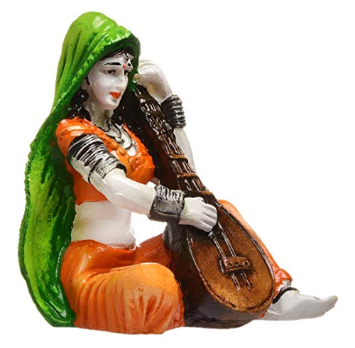 India Handcrafted Resin Rajasthani Playing Veena Lady Idol Sculpture I Showpiece for Home Decor