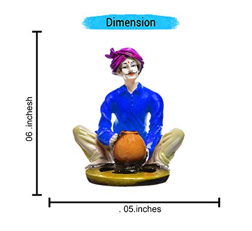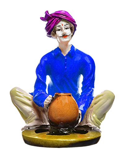 India Home Decor Beautiful Hand Carved Rajasthani Men Makking Pottery Polyresin Showpiece for Drawing & Living Room.