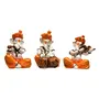 India Polyresine Set of 3 Orange Dhoti & Turban Ganesha Playing Instruments Showpiece for Home Decor