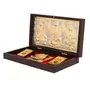 JAIPUR STONE WORK Gold Plated Laxmi Ganesh Saraswati Charan Paduka | Devotional Prayer Box | Wooden Momento Decorative Showpiece Box Packing | Diwali Gifting Charan Paduka (Laxmi Ganesh Saraswati)