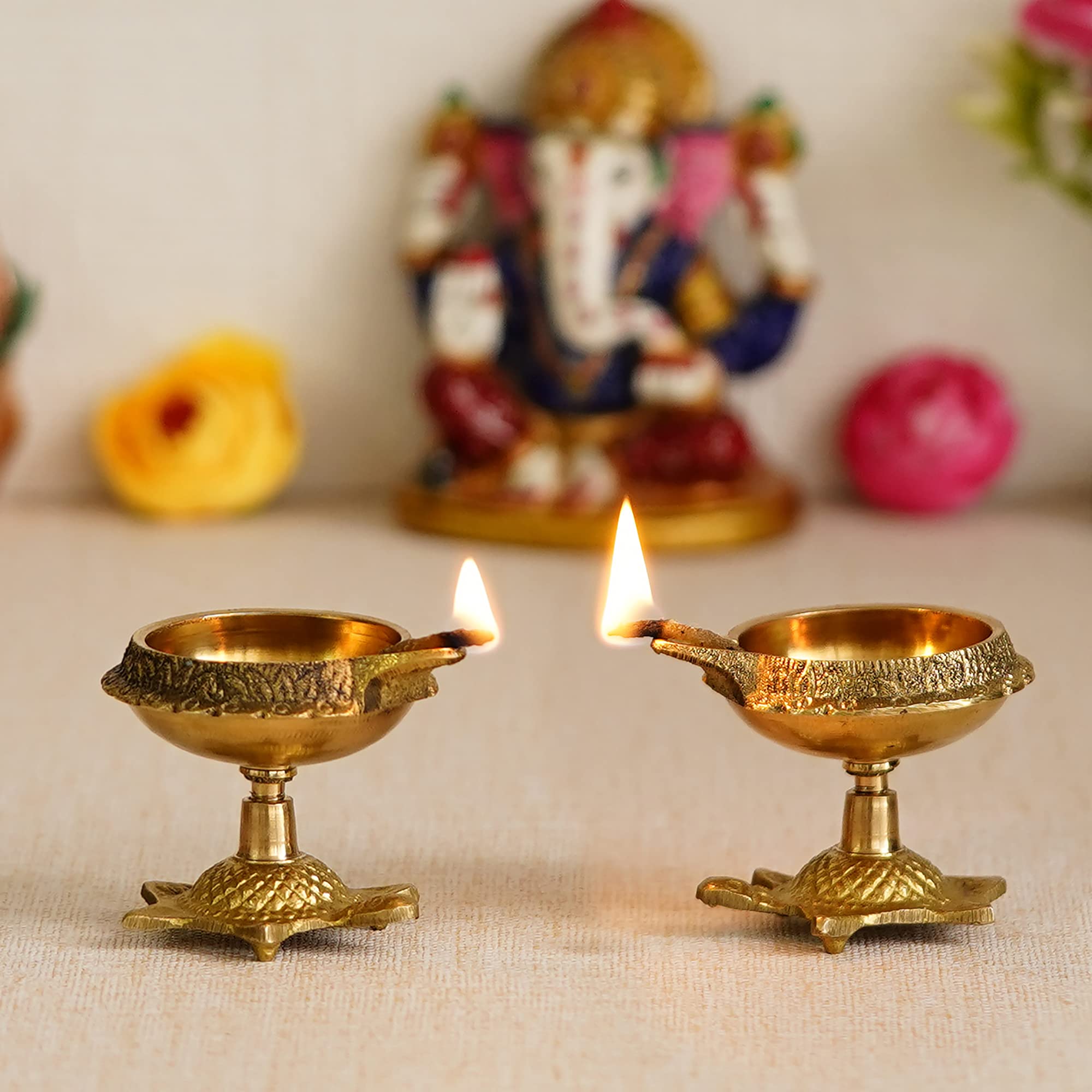 • Package Content - One Set of 4 Handcrafted Decorative Brass Diyas with Tortoise Base