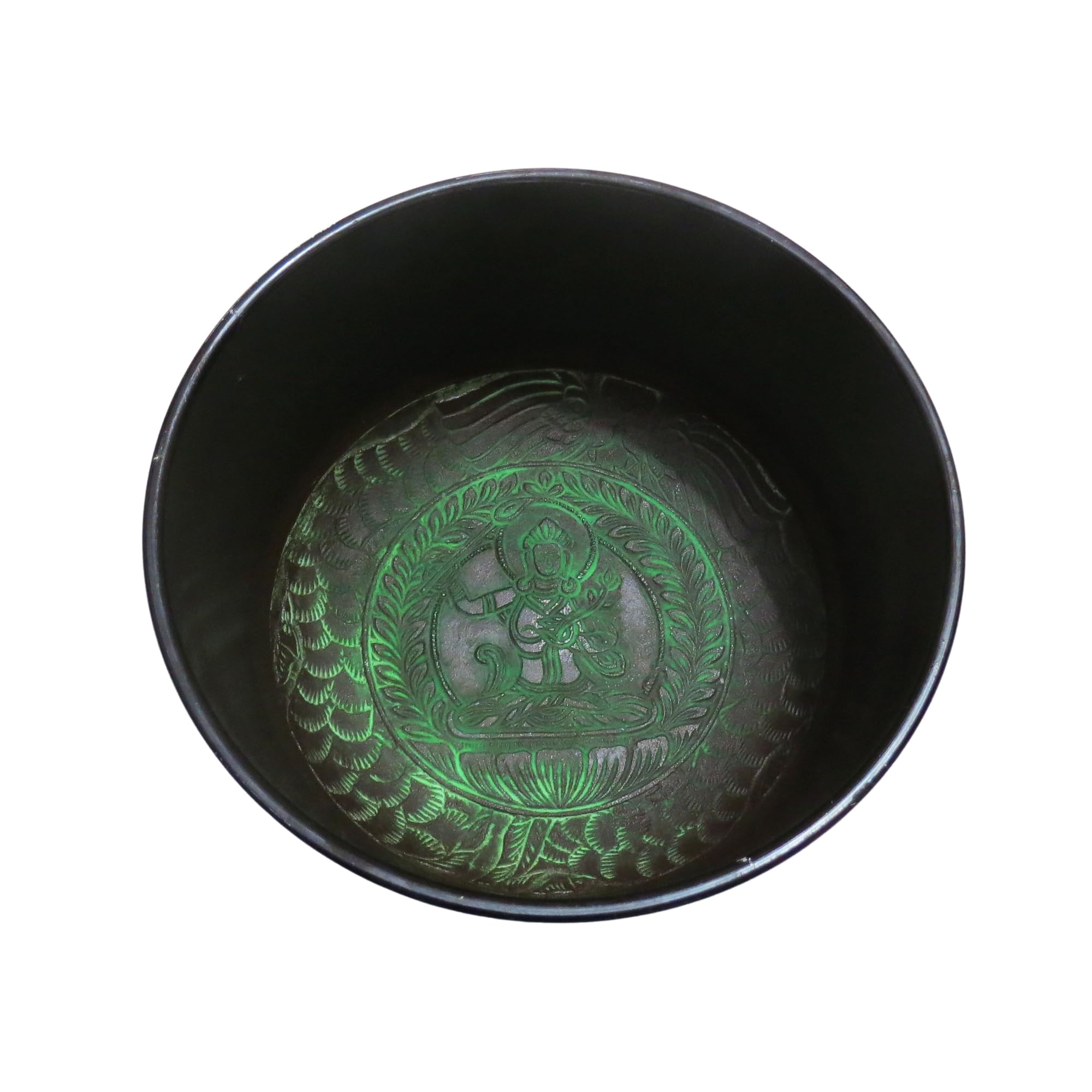A spinning bowl also known as a singing bowl or Tibetan singing bowl is a type of musical instrument with a rich history in Tibetan culture and Buddhist practises. It is often used for meditation relaxation and spiritual healing. A spinning bowl typically consists of a metal bowl made of various alloys such as Aluminum with a round bottom and an open top. The bowl's design allows it to produce harmonic and soothing sounds when struck or played. To create sound the spinning bowl is often placed on a cushion or held in the hand and a mallet also called a striker or a wand is used to strike or rub the rim of the bowl. The friction or impact produces vibrations that resonate through the metal resulting in a pleasant sustained tone. The sound produced by a spinning bowl has a unique quality and is often described as calming mesmerizing and therapeutic. It is believed to induce a meditative state promote relaxation and aid in focusing the mind. Many people use spinning bowls as part of their mindfulness or meditation practises to create a serene and peaceful atmosphere.