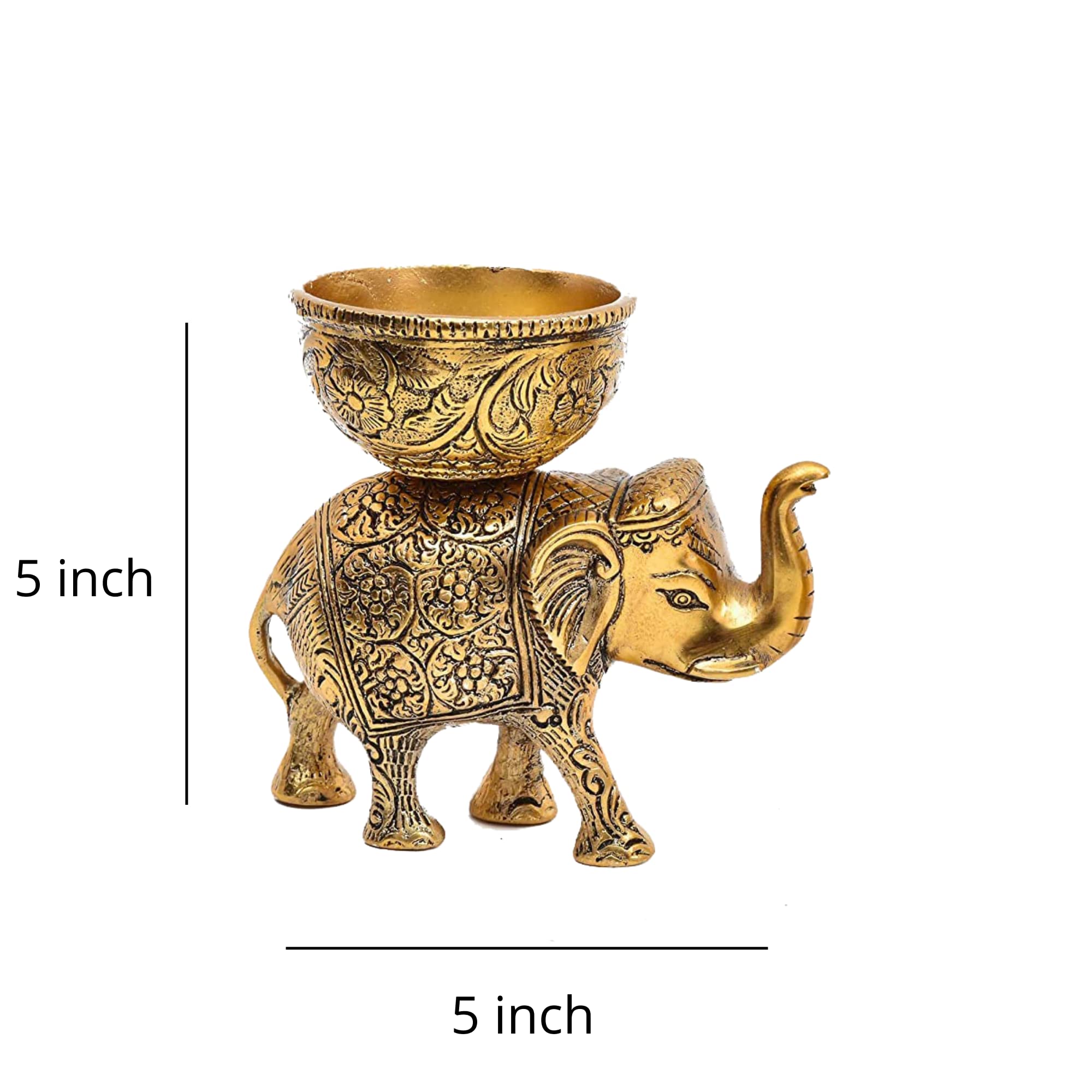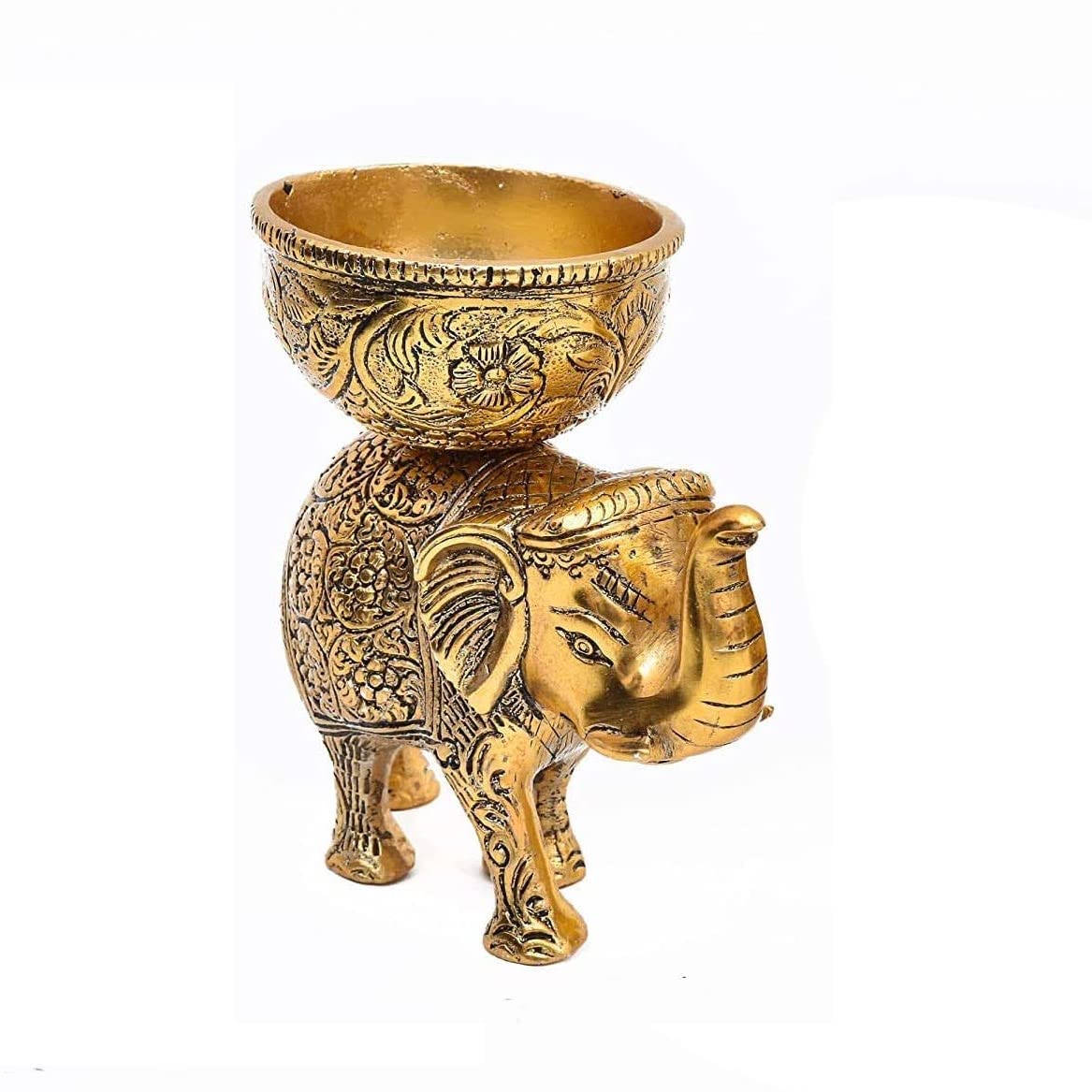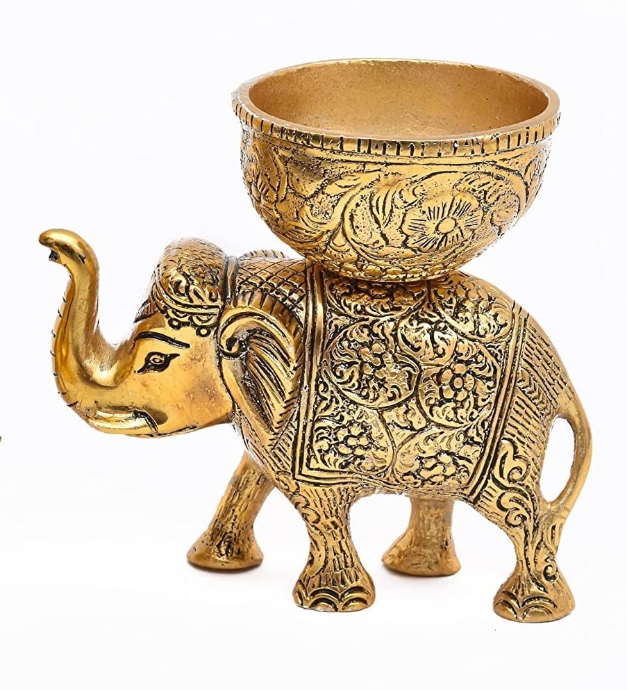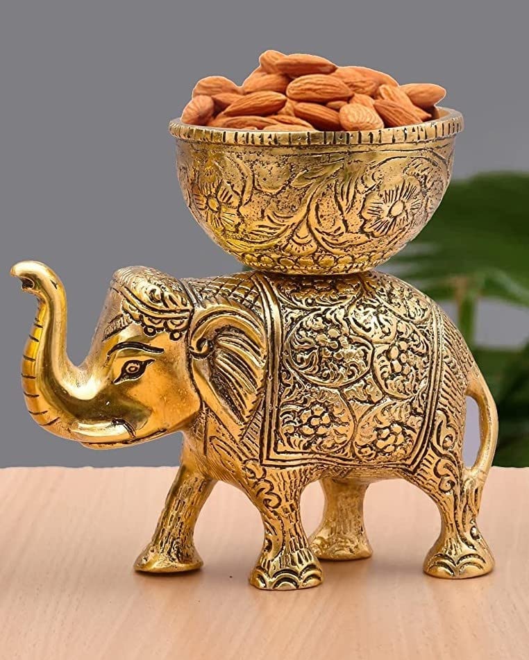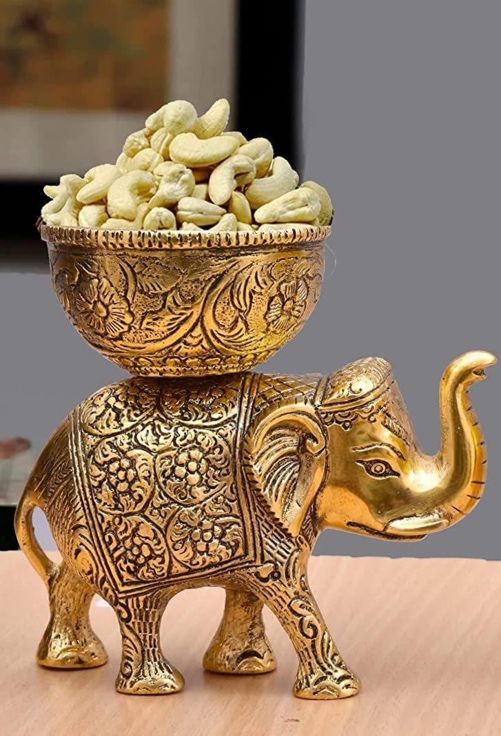 HomeHomeHome AccentFigurinesKridayKraft Metal Elephant Dry Fruit Bowl Showpiece Gold Polish for Your HomeOffice Table & Gift ArticleAnimal Decorative Showpiece Figurines.
