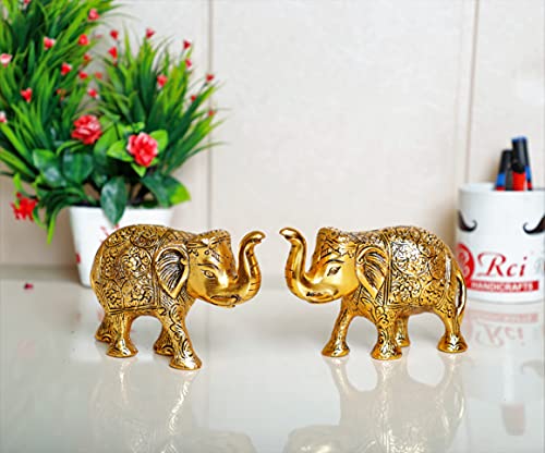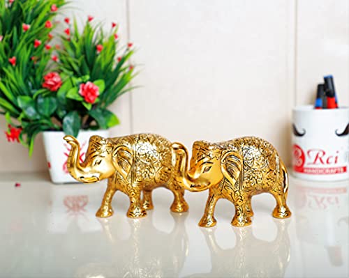 HomeHomeHome AccentFigurinesKridayKraft Metal Elephant Statue Small Size Gold Polish 2 pcs Set for Your HomeOffice Table Decorative & Gift ArticleAnimal Showpiece Figurines...