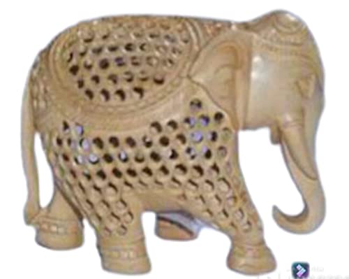 HomeHomeHome AccentFigurinesMARBLE INLAY ART AGRA - PACCHIKARI Wooden and Marble Elephant with Jali Design Carving with Baby Elephant Inside for Home Decoration and Gifting