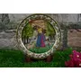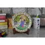 MEENAKARI ENAMEL PRODUCTS 22 Carat Gold Foil Work Round Shape Marble Showpiece Plate with Stand (14.5 cm x 1.5 cm x 14.5 cm) - Ragini with Musical Instrument