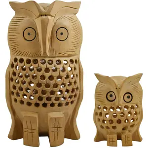 Wooden Owl Decorative Showpiece Pair...