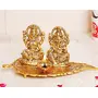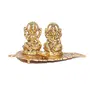 • Laxmi Ganesha idol Statue On Leaf || Product Dimensions- 20 x 10 x 10 cm (LXWXH) || Weight-280 GR || Material - Metal (Aluminium) || Color - Gold