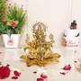 Kridaykraft Metal Ganesh Sit On Flower Gold Color Leaf for PoojaHomeOffice Decorative for Table and Gift for Have House Warming Anniversaries Birthday Wedding Gifts