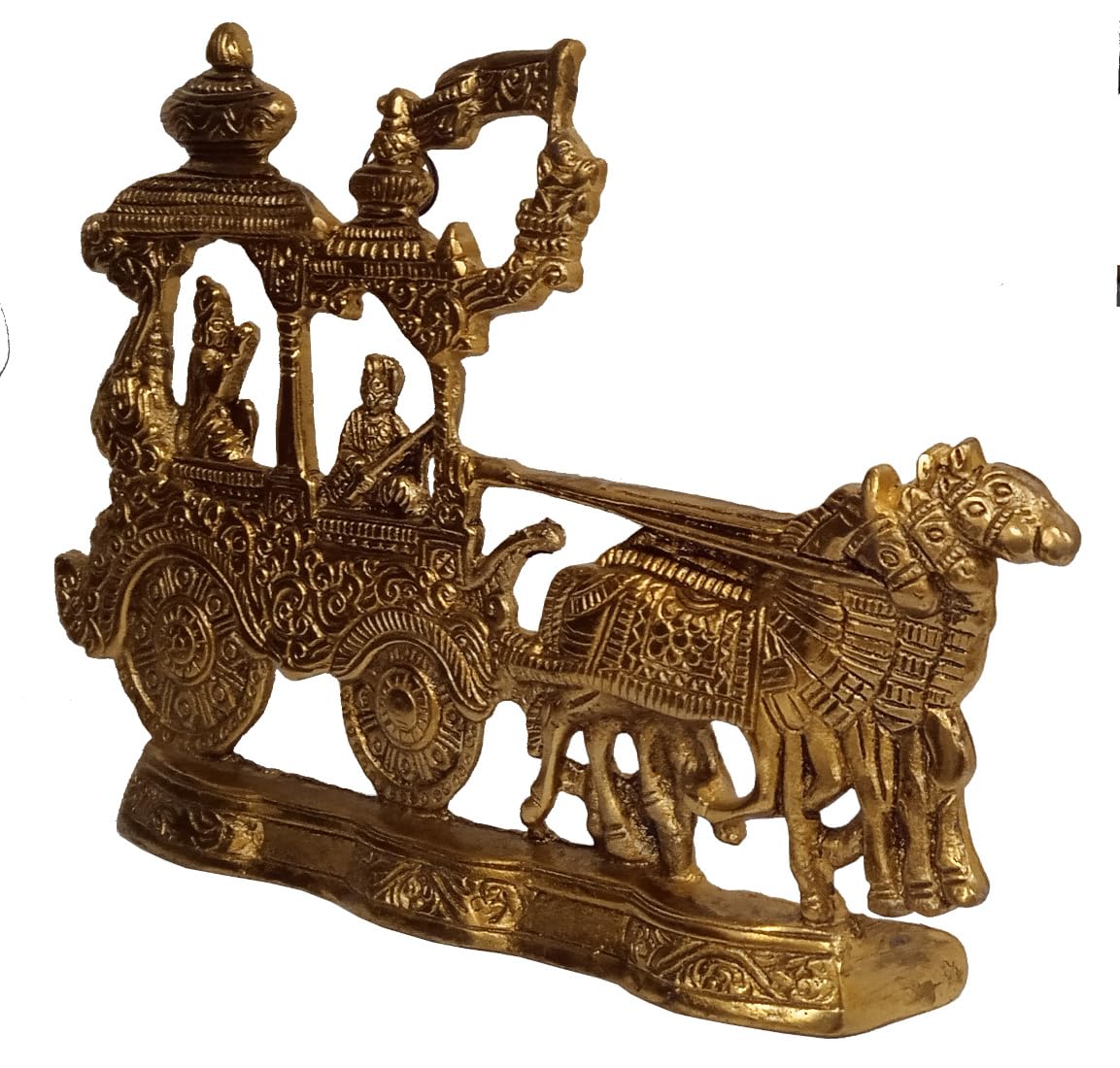 HomeHomeHome AccentFigurinesPurpledip Metal Statue Mahabharat Geeta Arjun Chariot (Rath) with Krishna & Hanuman: Decorative Idol for Home Temple Or Walls (12696)