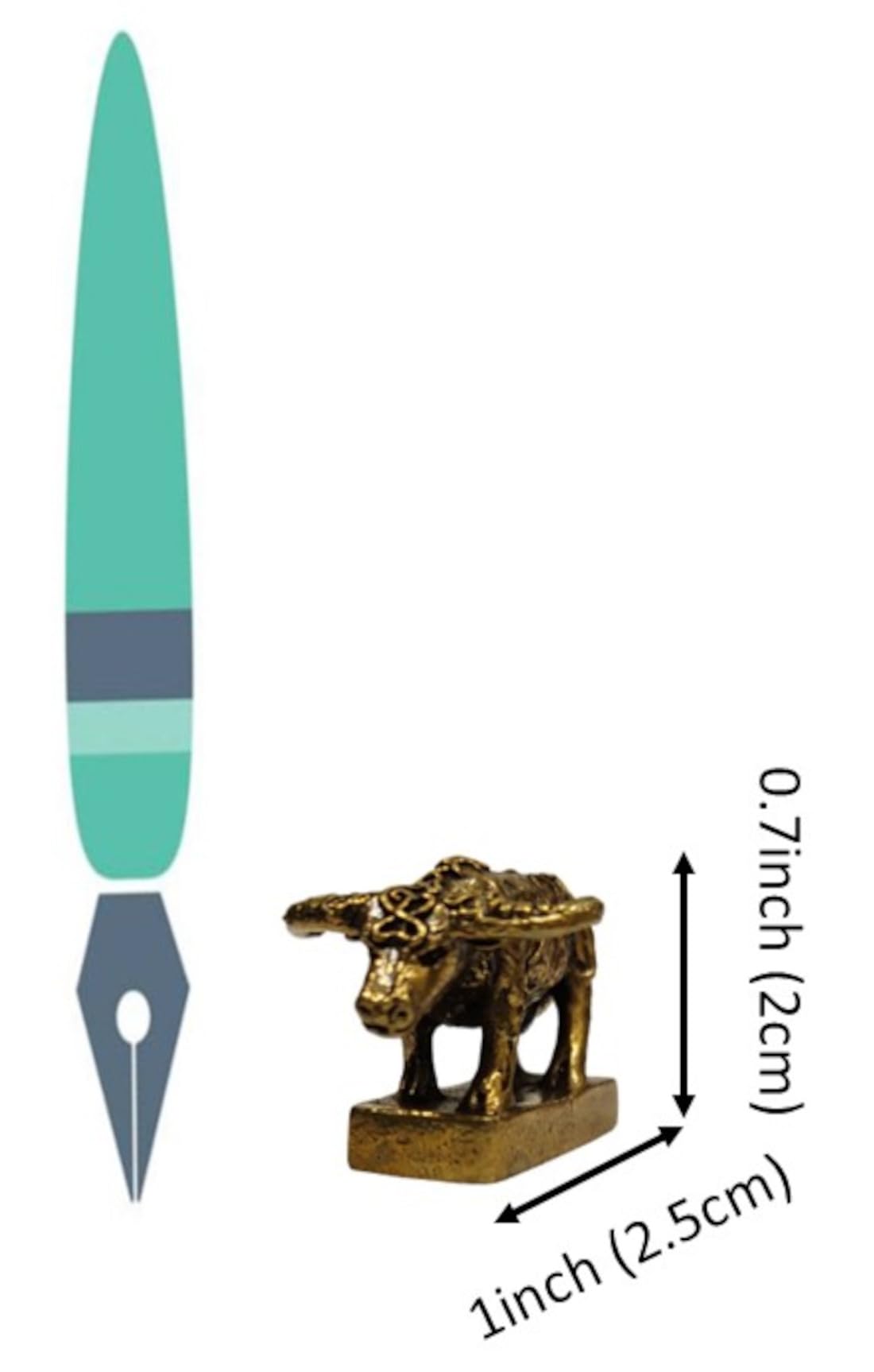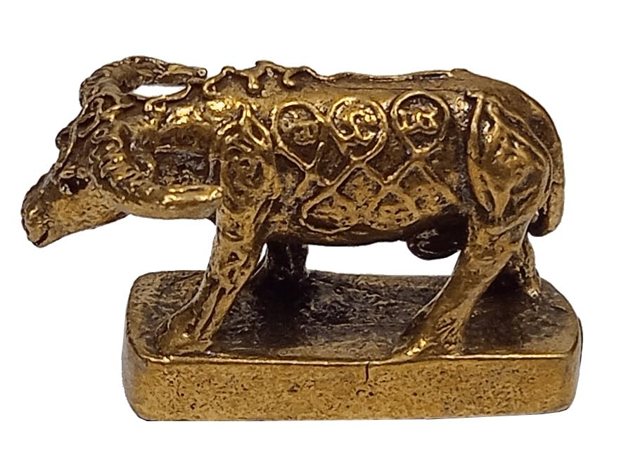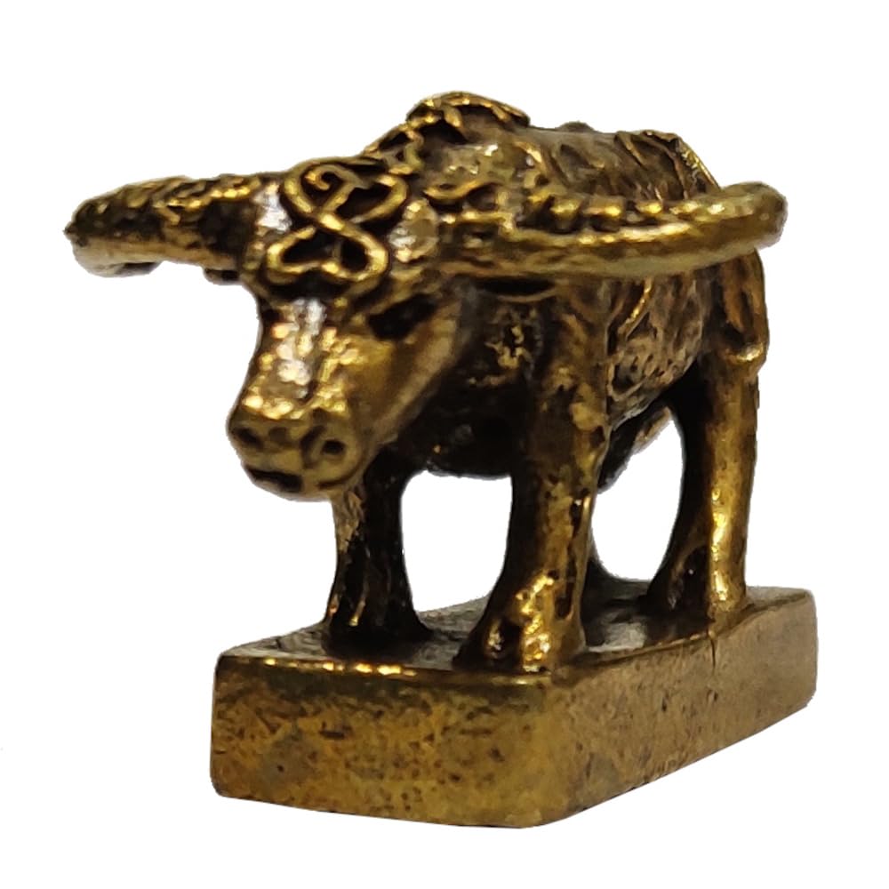 Brass statue of water buffalo for display & collection or gifting. Miniature idols may have minor polishing or casting blemishes that can't be avoided at this size.