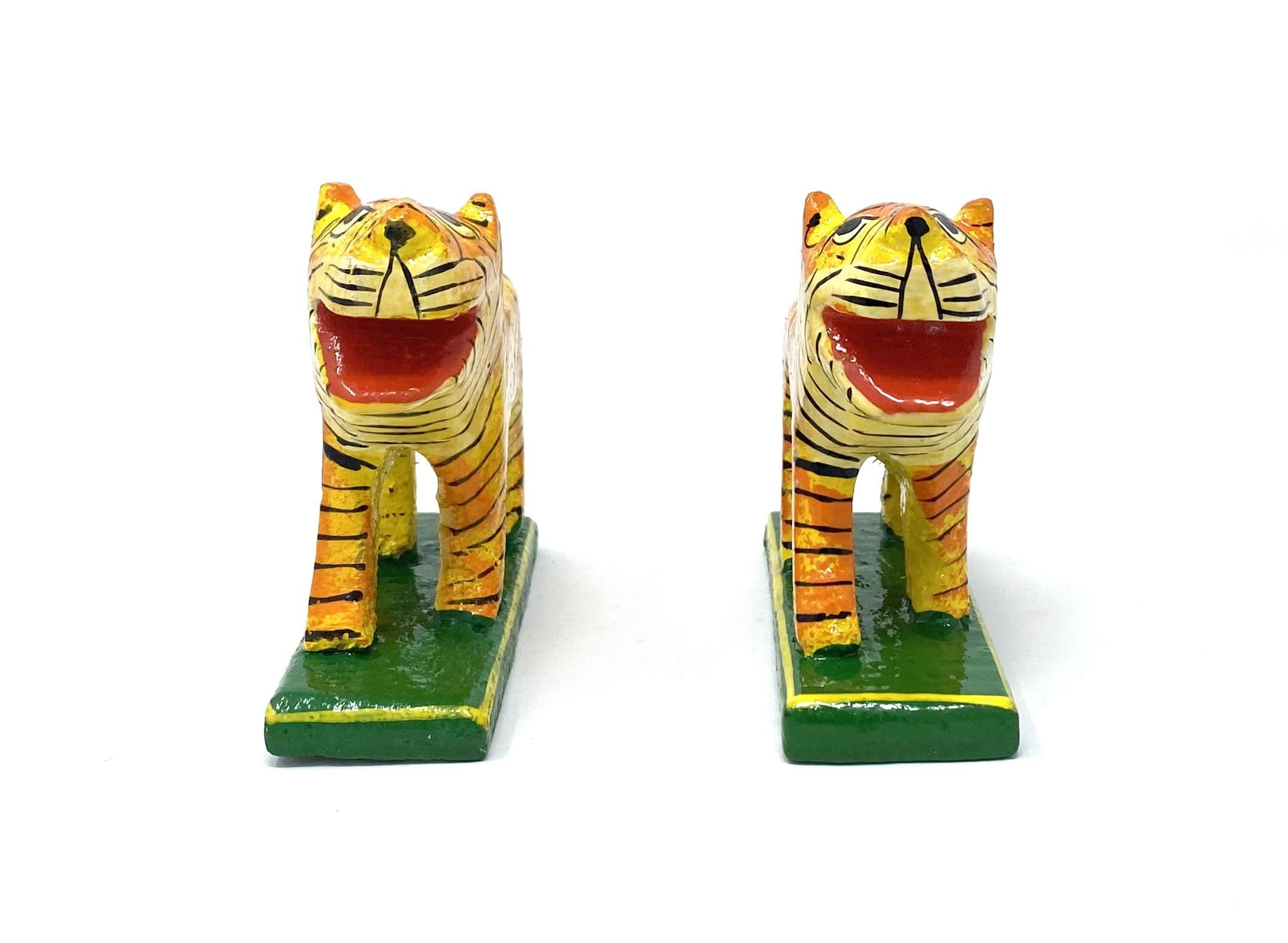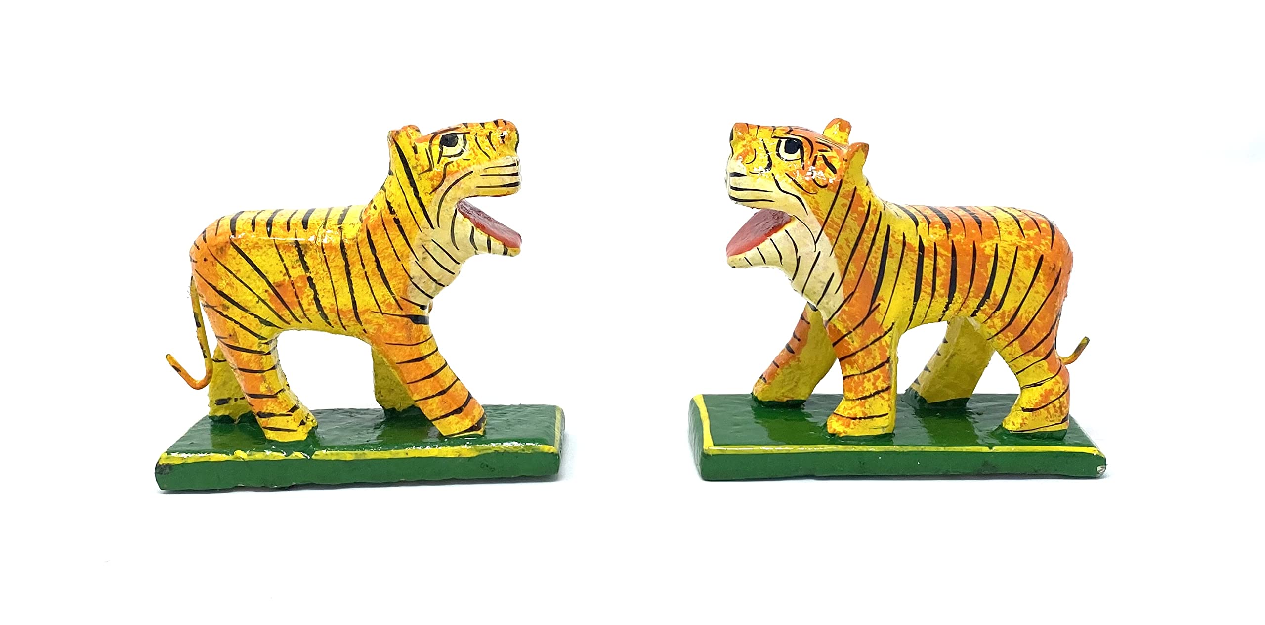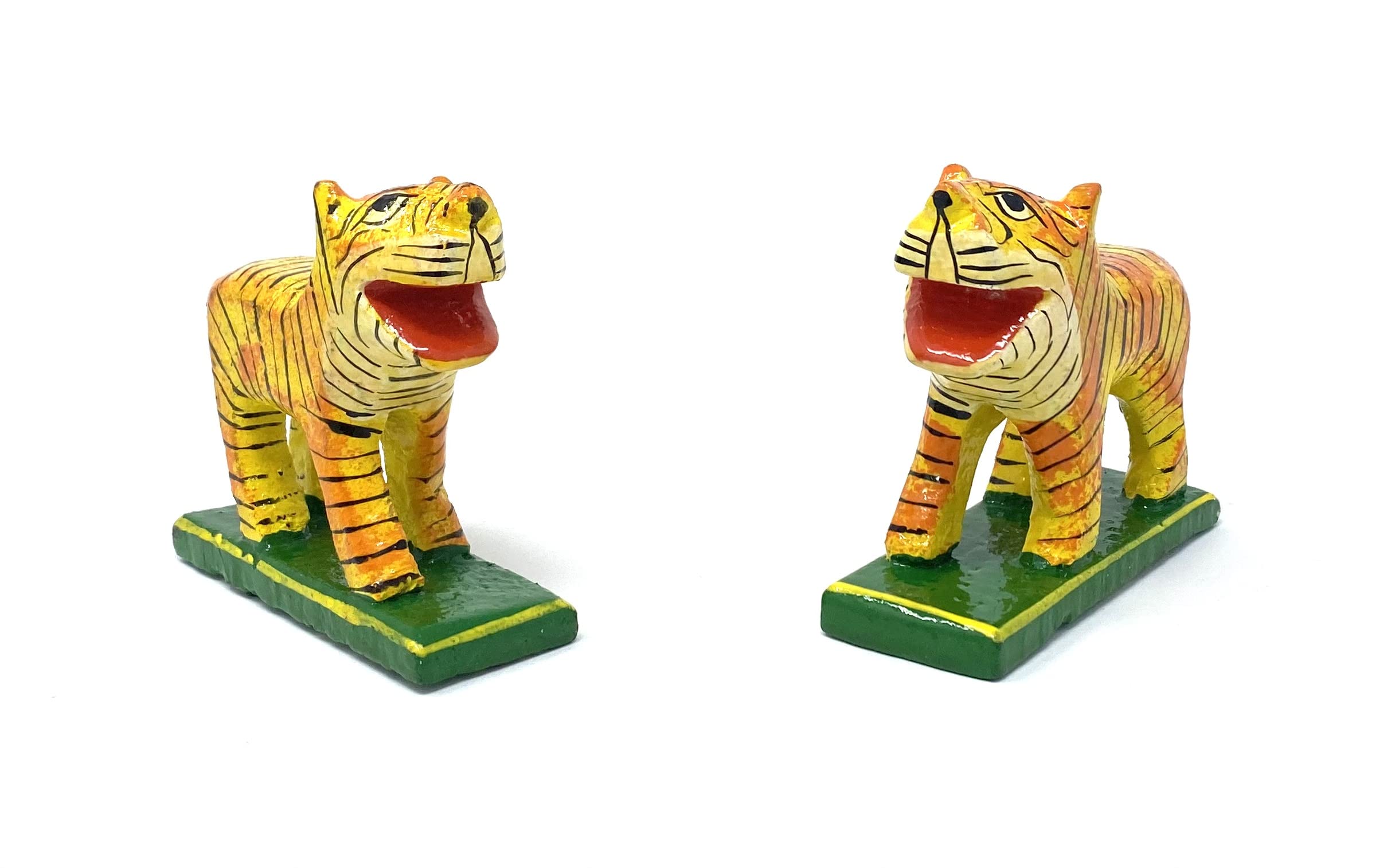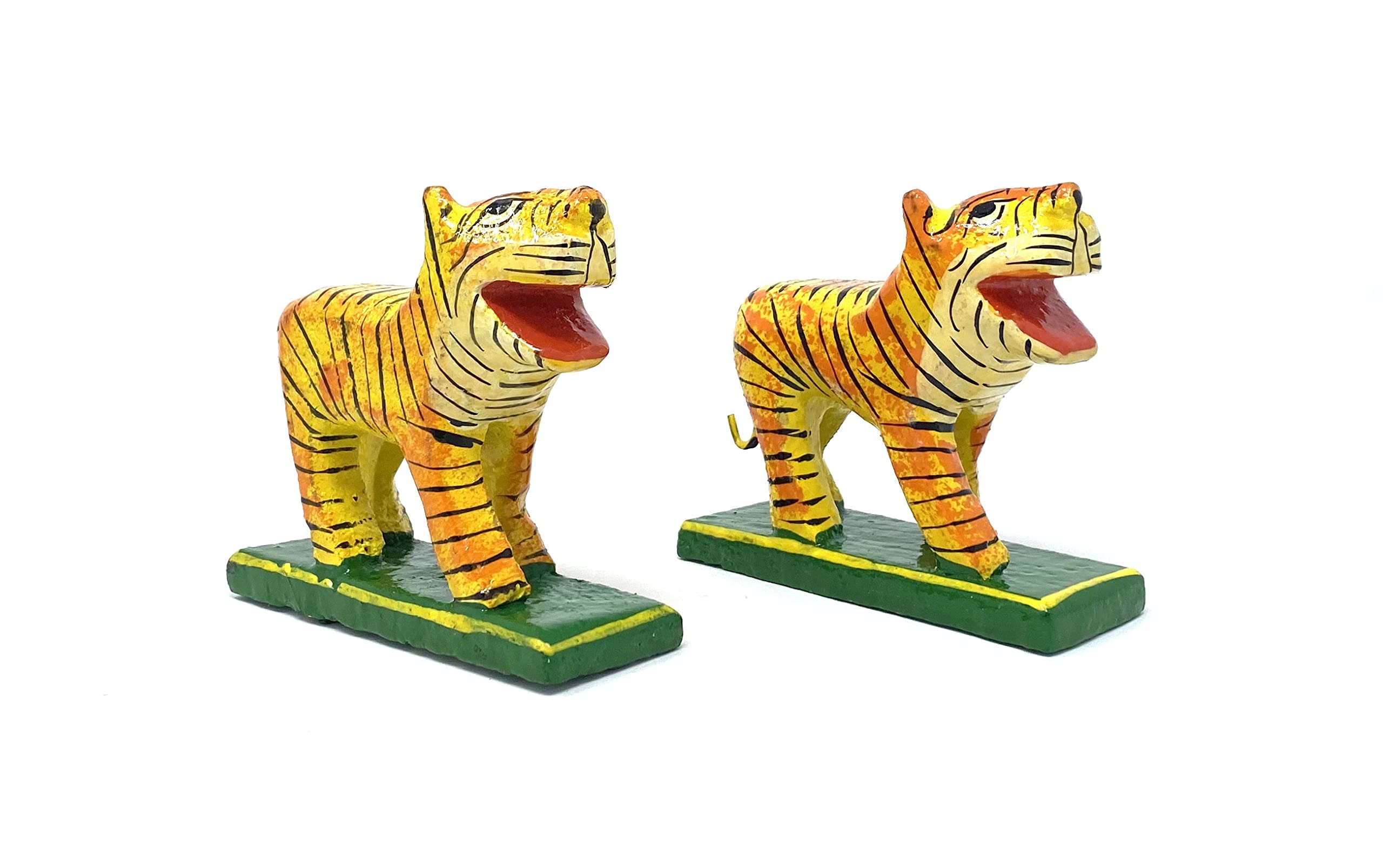 wooden Tiger Toy is creative and different from other pull-along toys. It is unique because of the traditional Indian touch to a transport that was popular decades ago. It is a friendly toy that excites toddlers and encourages them to walk and be active. VARANASI WOODEN TOYS Handcrafted tiger showpiece made from fine wood and carved by experienced craftsmen. great art and carving gives it a amazing and beautiful looks that will add great look in your home. This wooden tiger showpiece set of 2 is best for home decoration and best gift for your dear ones. This wooden handicraft item can runs forever and made by indian popular Varanasi Karigars.