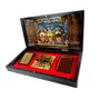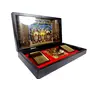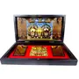 WOOD CARVING WORK Beautiful Gold-Coated 3D Footprint with Lord Jagannath Balabhadra and Shubhadra Figurines in Wooden Box with Mild Chandan Fragrance (Box Color : Chocolate Brown; Product material : Wood glass Gold plated Metal; Height: 1.5 inches X Length: 8.25 inches X Width: 4.4 inches; Weight: 330 Grams). Unique Gift for Parents Birthday Anniversary and House Warming. Elegant dcor item for office table and cash counters