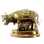 WOOD CARVING WORK Brass Handcrafted Vaastu Kamadhenu /Holy Cow and Calf Figurine/ Statue/ Idol / Showpiece / Gift /Home Decor/Office Decorative Items (Golden; Height: 8 cms X Length: 10 cms X Width 6 cms; weight: 510 grams)