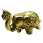 WOOD CARVING WORK Decorative Brass Elephant Trunk Up Antique Showpiece for Home Decor and Gifts (Golden Finish: Length: 6 Cms X Width: 4 Cms X Height: 4.5 Cms X 225 Grams)