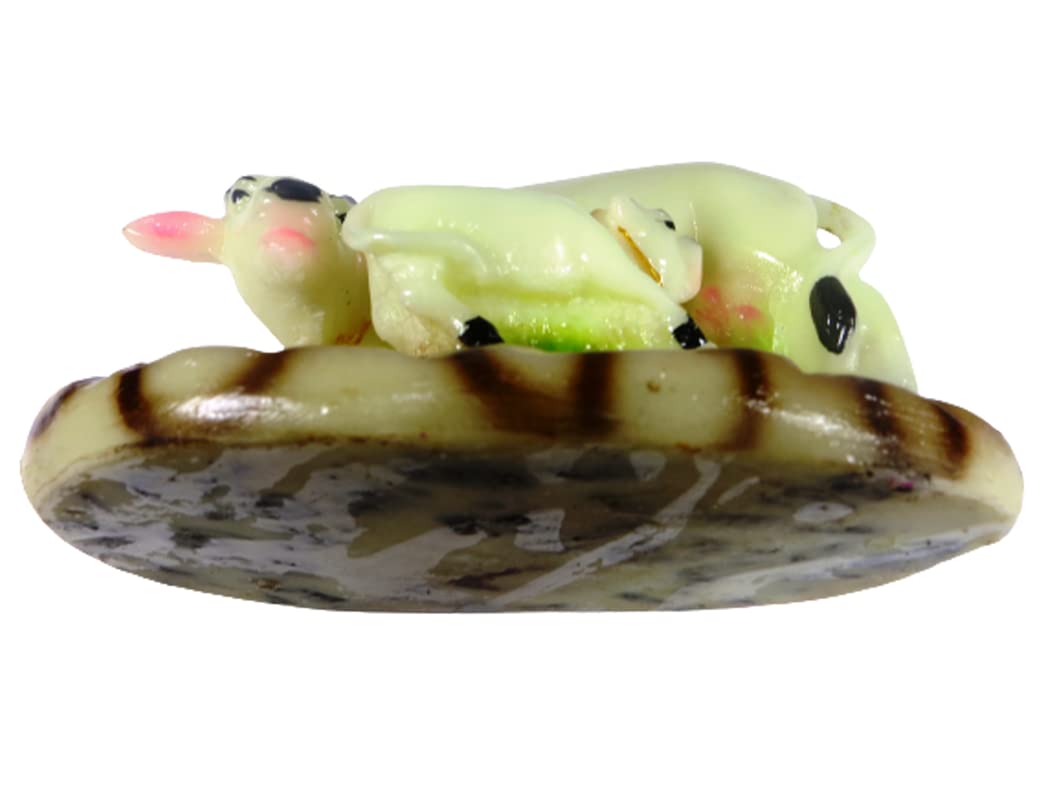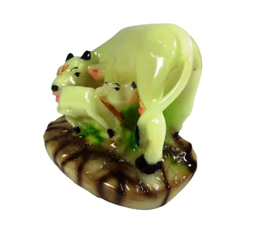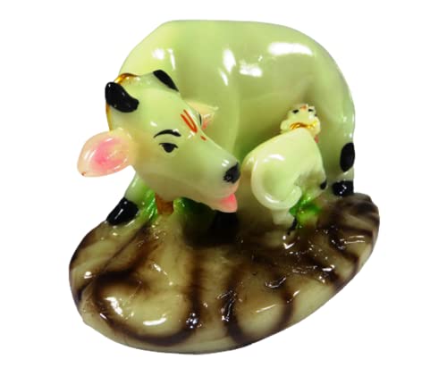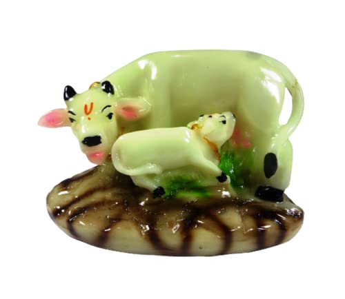 WOOD CARVING WORK Polyresin Kamadhenu /Holy Cow and Calf Figurine/ Statue/ Idol /Showpiece / Gift /Home Decor/Office Decorative Items. Kamadhenu is often seen along with its calf. Kamdhenu cow idol along with its calf is the symbol of prosperity and Vatsalya (love that a mother feels for a child).