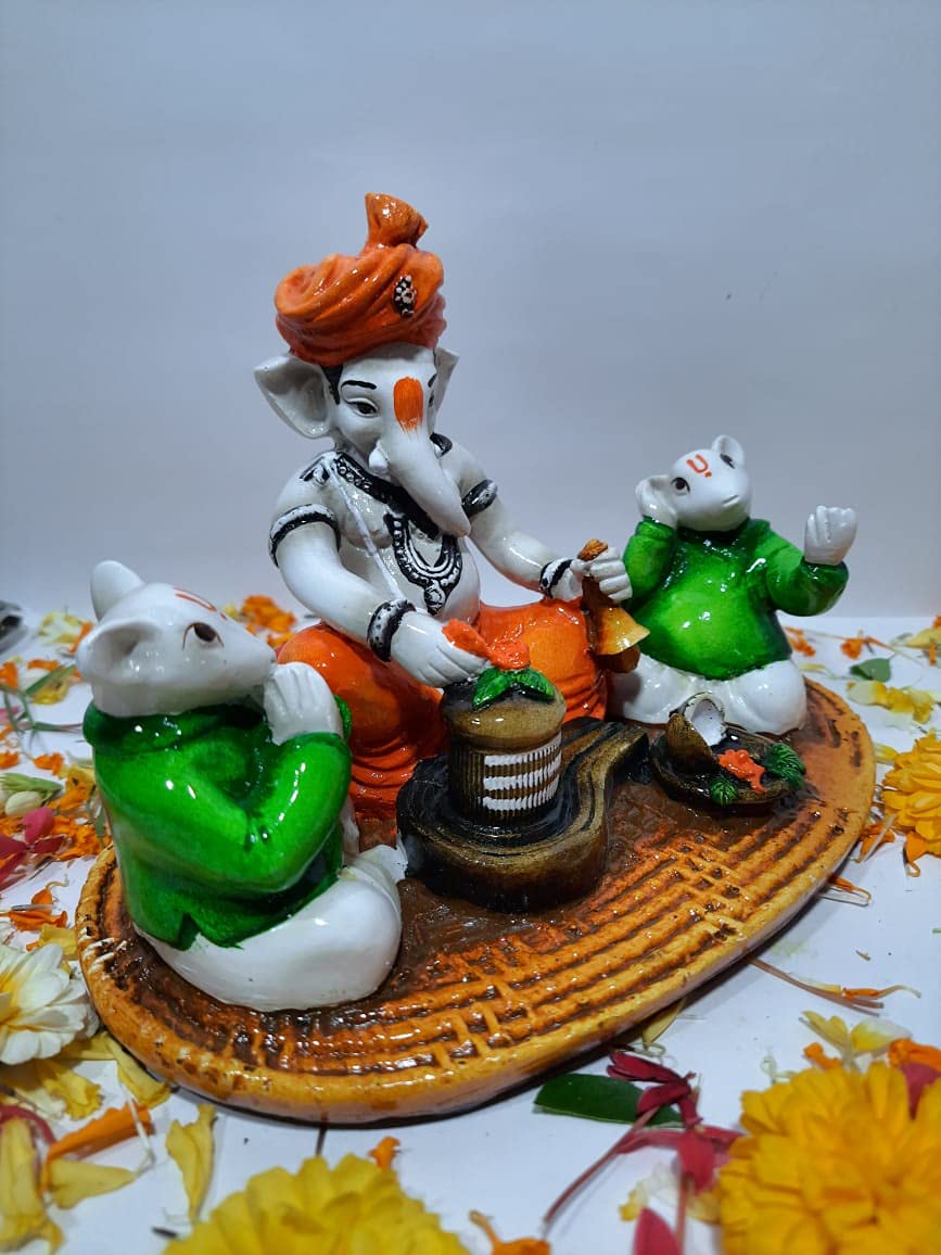 WOOD CRAFTS OF RAJASTHAN standing shivling poojan Idol for home office and car dashboard. You can place this ganesha idol at hall guest room and kids room. perfect for gifting to your parents birthday friends and house warming. devotional idol bring peace in you house and success.