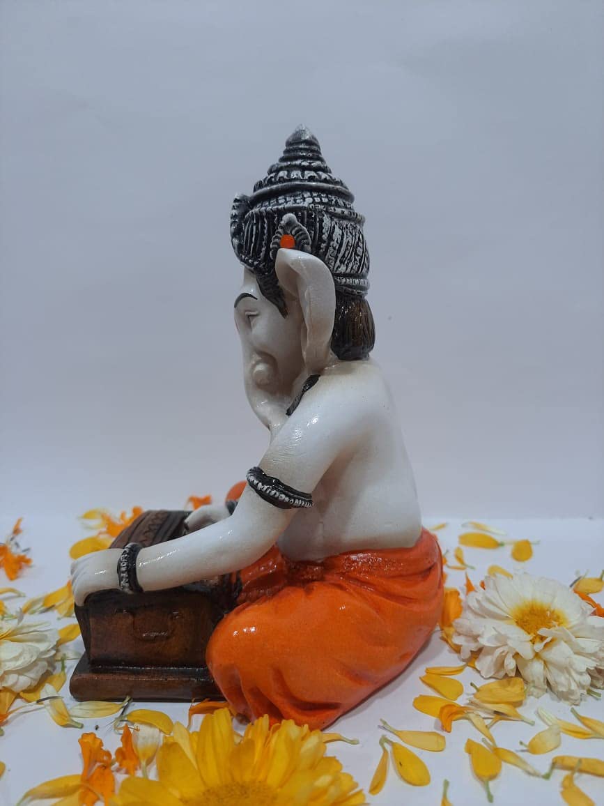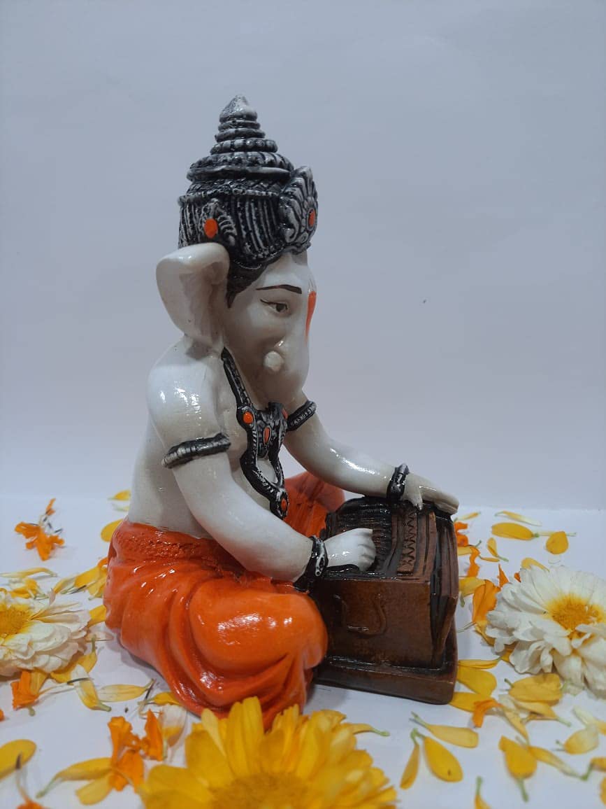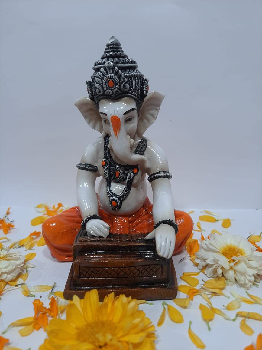 This Handcrafted Ganesha playing musical instrumental harmonium idol are always good for home office and car dashboard. Also known as gajamukha and vignaharta are most worshiped deities in the Hindu pantheon. Its bring postive energy success prosperity and financial gain to the house. Perfect for any occassion and also can be gifted.