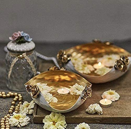 Brass Galley Designer Urli Set of 2 Handcrafted with Royal Finish Diwali Gift Set (Cure Urli)
