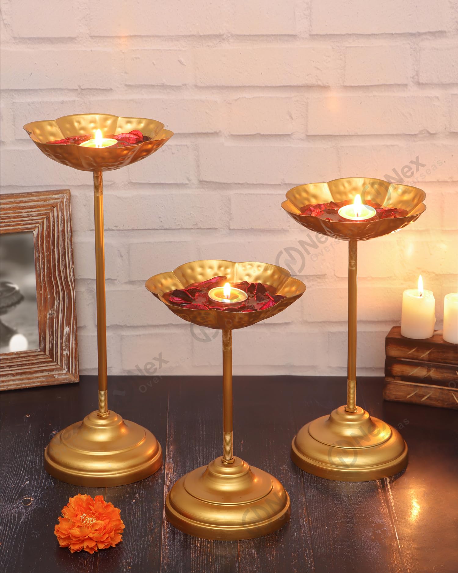 HomeHomeHome AccentUrulisNex Overseas Decorative Urli Bowl Tealight Holder Stand| taj Urli Stand Set of 3 for Decoration|Floating Diya Stand Home Decor Decorative Showpiece| (Set of 3),