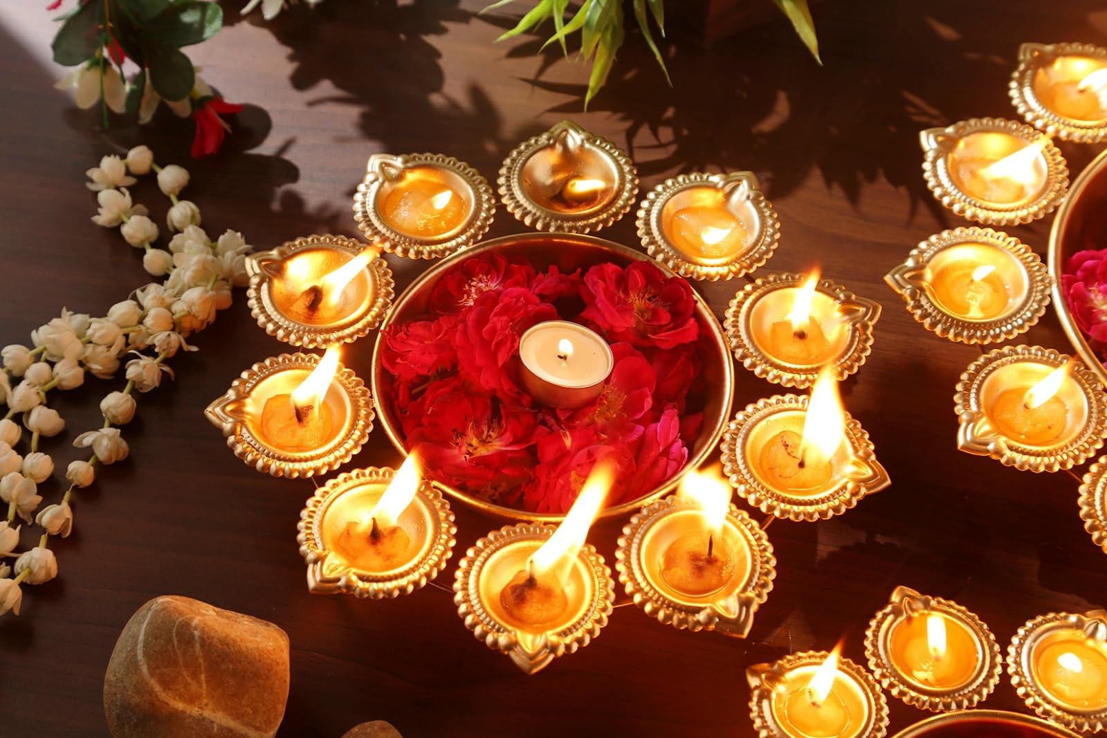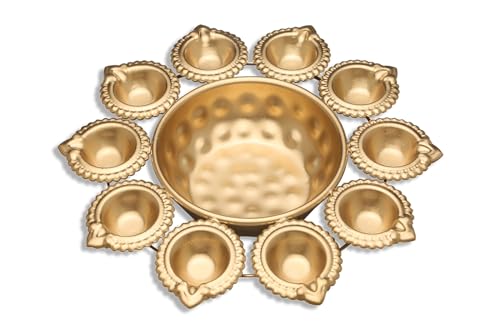 HomeHomeHome AccentUrulisR Ayurveda Copper Diya Shape Flower Decorative Urli Bowl For Home Handcrafted Bowl For Floating Flowers For Home (10 Inches) Metal - Brown, 1 L