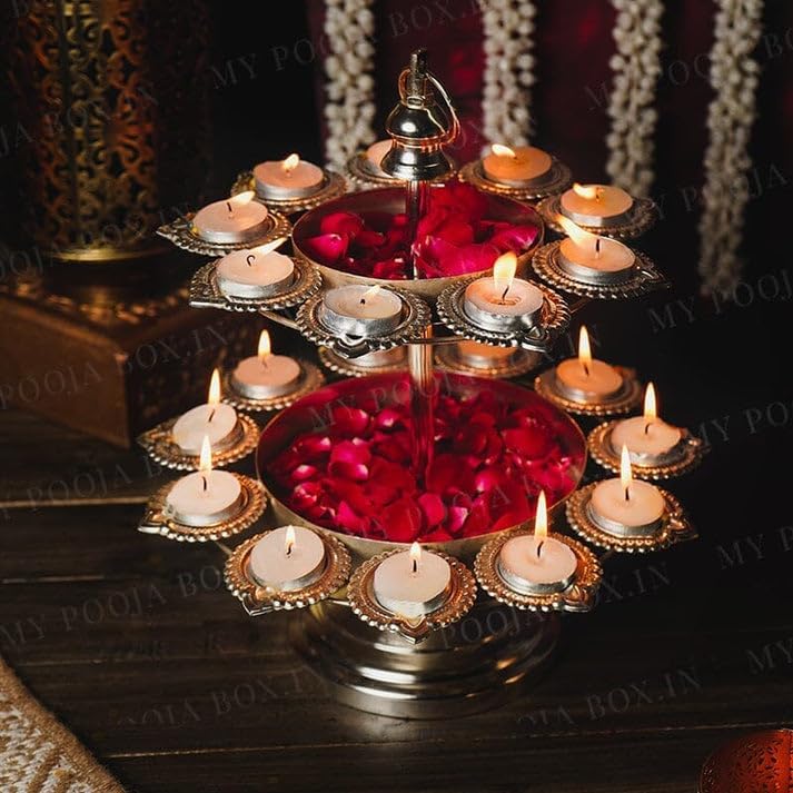 Introducing our exquisite Decorative Urli Bowl Tealight Holder Stand a true embodiment of elegance and tradition. This remarkable Urli Stand Shamadan for Decoration is the perfect addition to your home decor designed to infuse a touch of sophistication and spirituality into your living space. Crafted with utmost care and attention to detail this Floating Diya Stand serves as a beautiful decorative showpiece that is sure to capture hearts and create an ambiance of serenity. **Key Features:** **Tealight Holder Stand:** This Urli Bowl serves a dual purpose functioning as both a decorative piece and a practical tealight holder. Place your favorite scented or decorative tealights within the Urli and watch as they cast a warm soothing glow creating an enchanting atmosphere in your home. **Versatile Decor Piece:** Whether you're celebrating Diwali a special occasion or simply want to enhance your everyday decor this Urli Bowl is an ideal choice. Its versatile design complements various themes and decor styles making it suitable for any room in your home. **Intricate Design:** The Urli Stand Shamadan for Decoration boasts an intricate and traditional design featuring ornate patterns and detailed craftsmanship. The fine detailing adds an air of opulence and serves as a stunning focal point in any setting. **Floating Diya Stand:** This Urli Bowl is specifically designed to hold floating diyas. You can fill it with water and place floating diyas or flowers on its surface. The play of light and reflection on the water creates a mesmerizing effect elevating your home decor to a whole new level. **Perfect for Diwali and Pooja:** Illuminate your Diwali celebrations with this Urli Bowl which is not only a beautiful decor piece but also symbolizes the traditional aspect of Diwali with its Diya-holding capability. It's also perfect for Pooja rituals and can be used to offer flowers and offerings to the deities. **High-Quality Material:** Crafted from high-quality