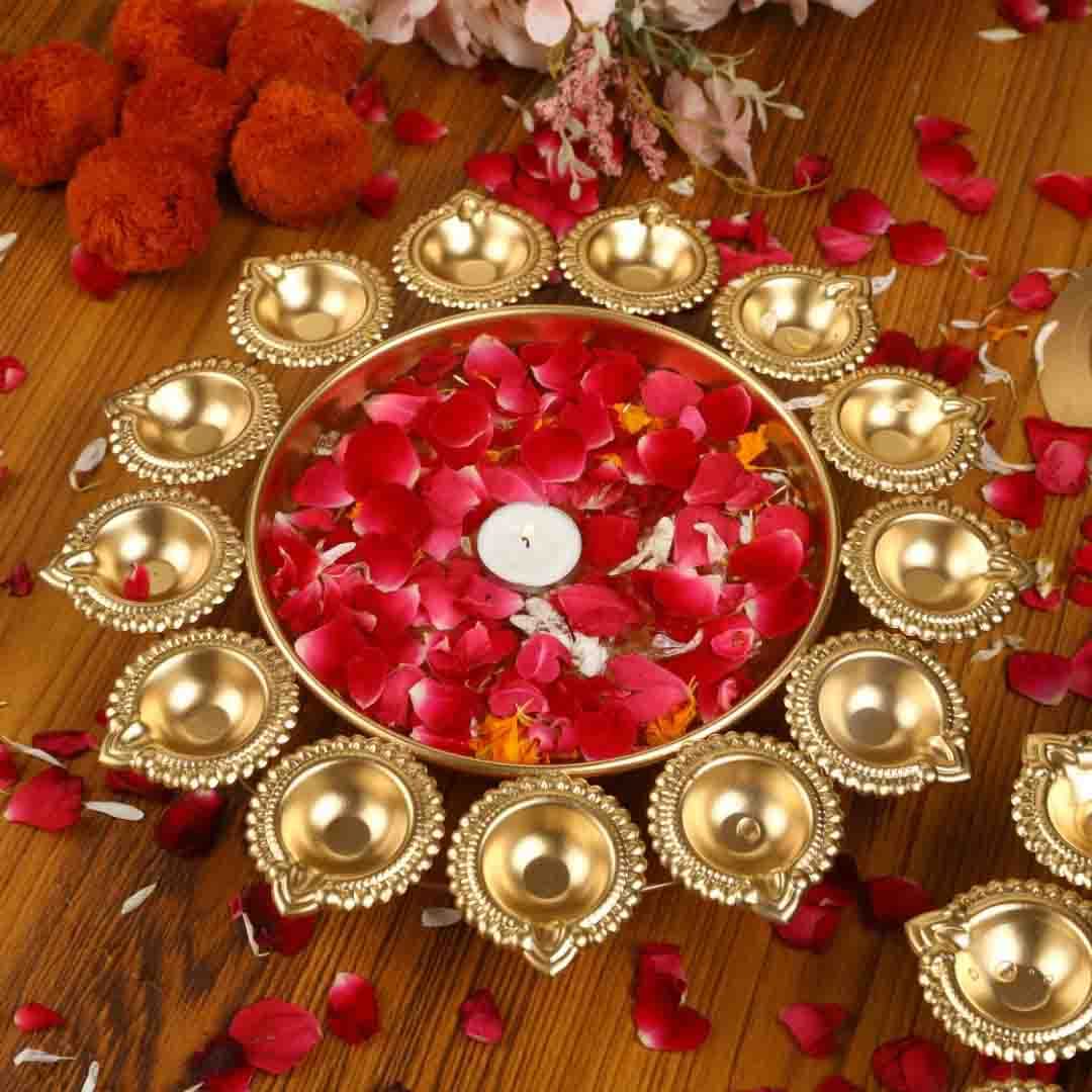 HomeHomeHome AccentUrulisFestive Vibes Diya Shape Flower Decorative Urli Bowl for Home Handcrafted Bowl for Floating Flowers and Tea Light Candles HomeOffice and Table Decor Diwali Decoration Items for Home (14 Inches)