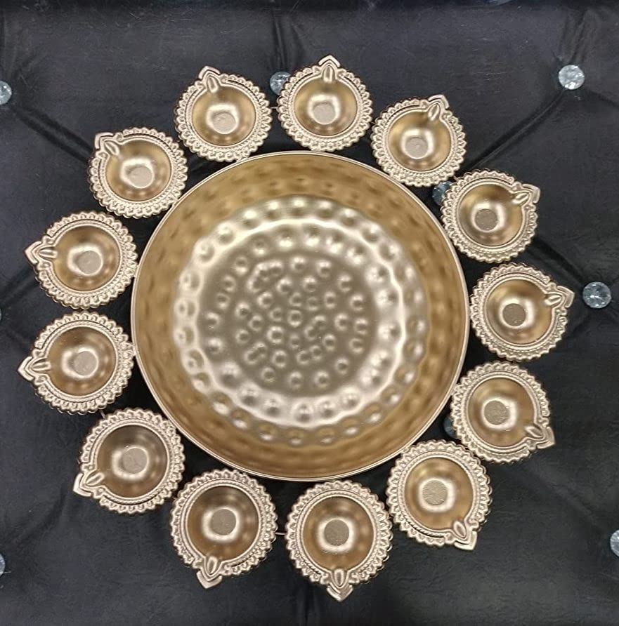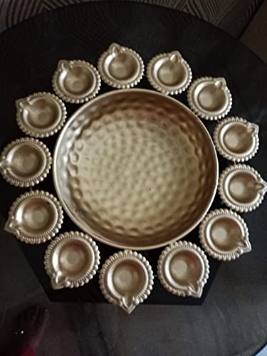 HomeHomeHome AccentUrulisJR Handicrafts World Diya Shape Flower Decorative Urli Bowl For Home Handicraft Bowl For Floating Flowers&Tea Light Candles|Diwali Decoration Items For Home (14 In,Alloy Steel,Gold),1 liter