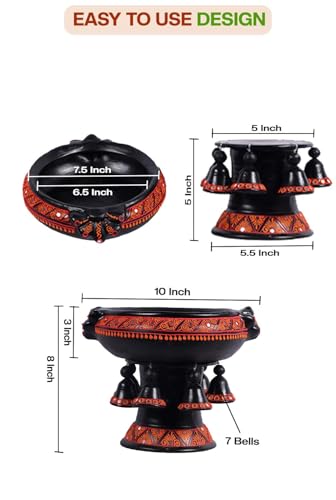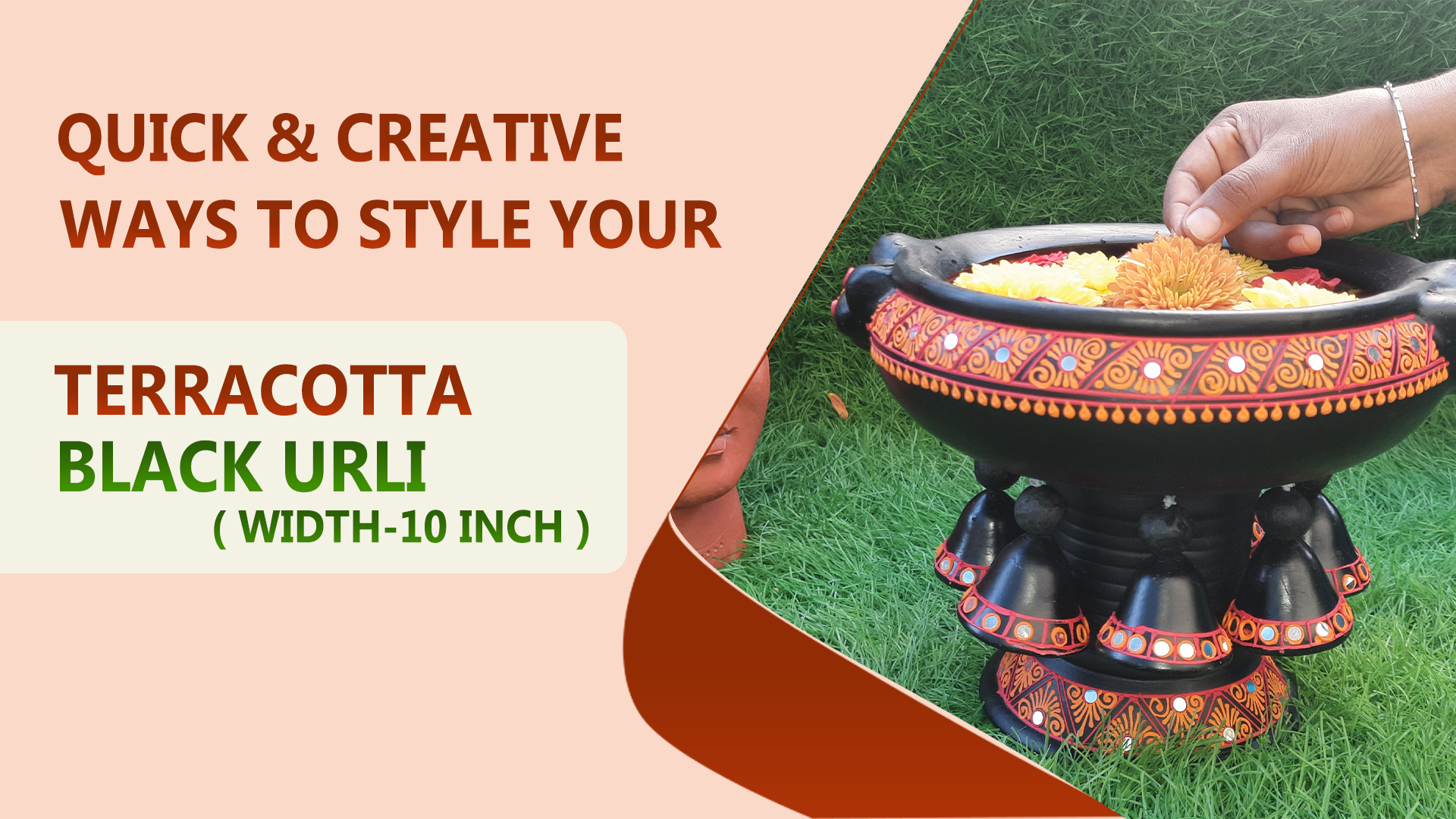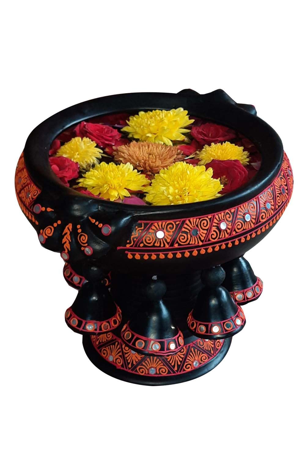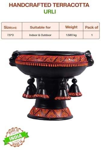 TOP QUALITY MATERIAL :Our urli with stand made of high quality terracotta and well handmade painted Finsihed d high temperature fired .DIMENSIONS: URULI:Outer dia:8.5 inchInner dia :6 inchHeight:2.5 inchinch STAND:Top dia:5inchHeight:5inchBottom :5inch CA