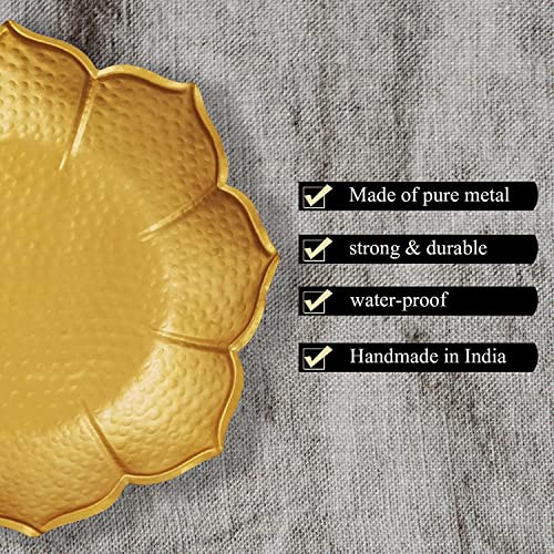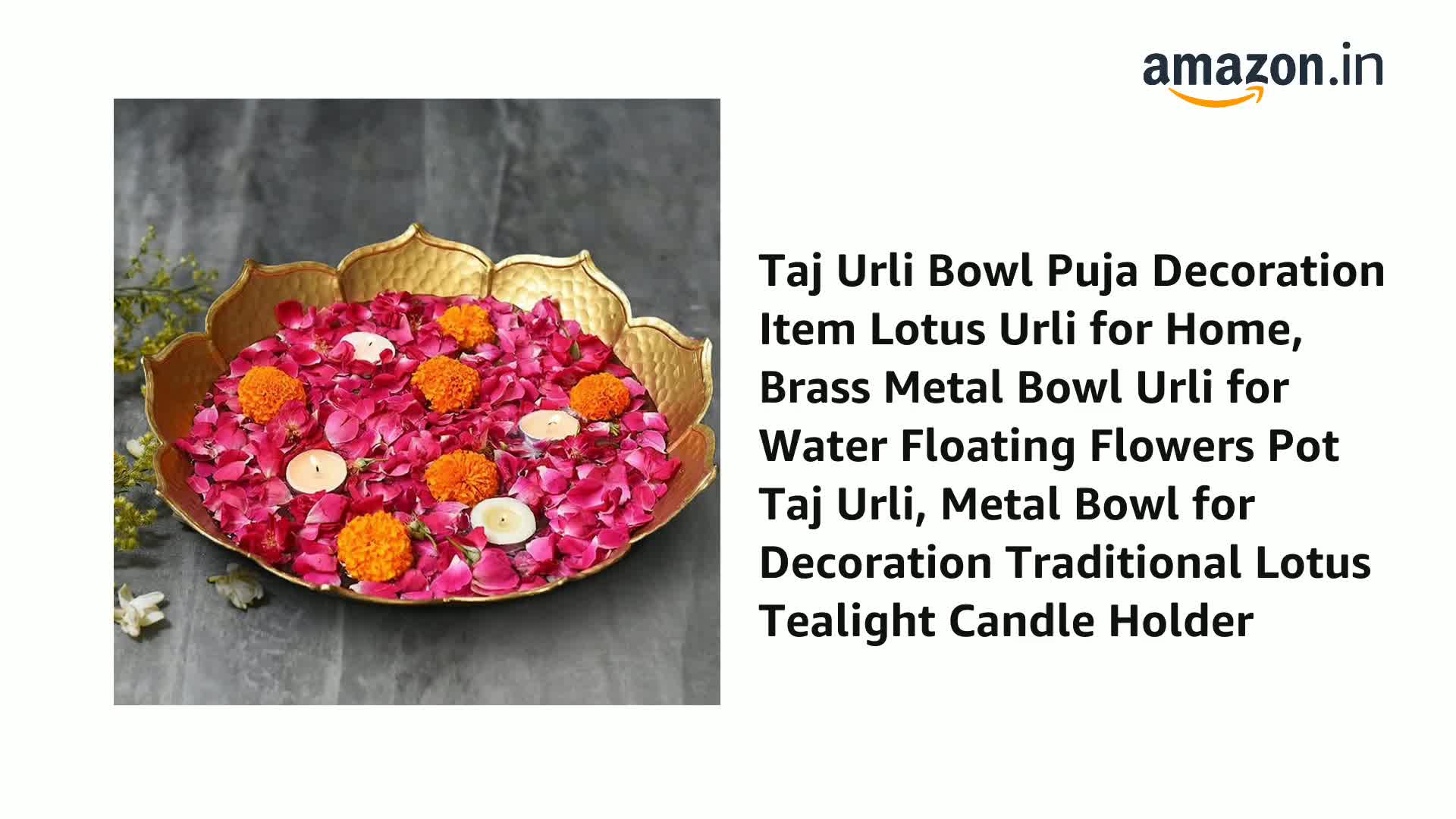 The Lotus Urli Bowl is a stunning and symbolic decorative piece that embodies beauty purity and spiritual significance. Crafted with intricate details and exquisite craftsmanship the Lotus Urli Bowl adds a touch of elegance and tranquility to any space. The Lotus Urli Bowl is typically made of brass a durable and long-lasting material that can withstand the test of time. It is meticulously shaped and adorned with lotus motifs showcasing the skilled craftsmanship of Indian artisans. The brass is often polished to a high shine giving the Lotus Urli Bowl a luxurious and radiant appearance. The shape of the Lotus Urli Bowl is reminiscent of a wide-mouthed bowl or basin with a rounded bottom and flared sides. It is designed to resemble a lotus flower in full bloom. The lotus is a sacred flower in many cultures symbolizing purity enlightenment and spiritual awakening. Its presence in the Lotus Urli Bowl adds a sense of serenity and tranquility to the overall design. The outer rim of the Lotus Urli Bowl is adorned with beautifully sculpted lotus flowers petals and leaves. The lotus flowers are intricately crafted capturing the delicate and graceful nature of the real flower. The petals are meticulously shaped creating a visually captivating display of nature's beauty. The lotus leaves add depth and texture to the overall design enhancing the overall aesthetic appeal of the bowl. The Lotus Urli Bowl holds great cultural and spiritual significance in Indian traditions. It is often used for ceremonial purposes and festive occasions. The bowl is filled with water and adorned with fresh flowers such as lotus petals or other auspicious flowers which are considered sacred in Indian culture. This practice is believed to bring blessings purity and positive energy to the household creating an auspicious and inviting ambiance.