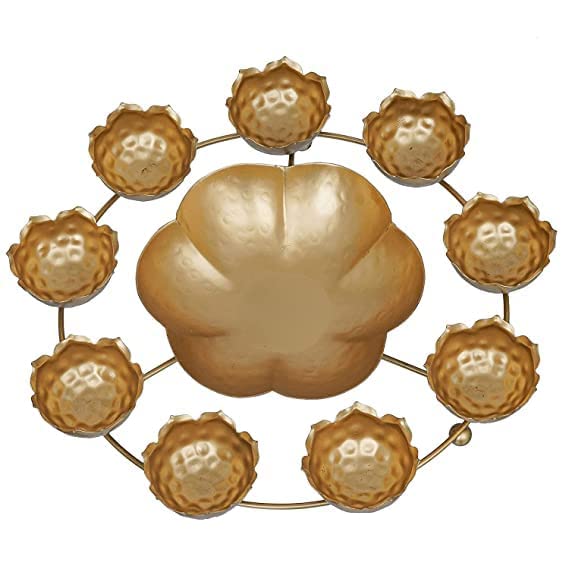 Nex Overseas Metal Bowl Shaped Urli For Diwali Home Decor Gifting Showpiece (Size : 11 Inches) - Golden, 400 ML