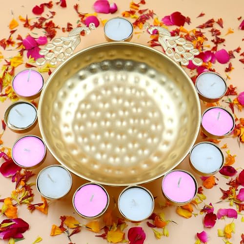 EXQUISITE DESIGN :- This Peacock Urli Diya Features An Intricate And Traditional Design That Is Sure To Captivate Your Senses. The Blend Of Classic And Contemporary Aesthetics Makes It Suitable For Any Home Decor Style.