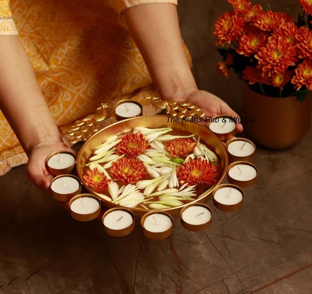 We bring this Beautiful Peacock design border Decorative Urli. Delicately handmade and skillfully hand-painted by craftspeople from the interiors of India. It serves as a great gift especially around religious celebrations and festivities. It is quite easy to carry and safe to use.(SIZE - 12 inch) Beautiful Handmade Metal Urli Easily recognizable by its distinctive shape the urli makes a handsome addition to the decor of any room and now you can enjoy the beauty of one that is made according to the time-honored traditions in your own home with the Handmade Urli along with hammered work on the bowl. This bowl for floating flowers or diyas is produced using sand casting techniques that have been passed down through generations of skilled metalworkers the Handmade Urli is a truly authentic Indian urli. To display the bowl in the traditional way fill it with water and then float living or artificial flowers on top. Add water to the urli mix a bit rose water and float flowers of your choice. You can also place floating candles on the surface of the water. No matter how you use the Handmade Urli you're certain to be impressed with its quality! Beautify your home with this traditional Indian decorative design. Add this Handmade Brass Urli with hammered work to your cart now!