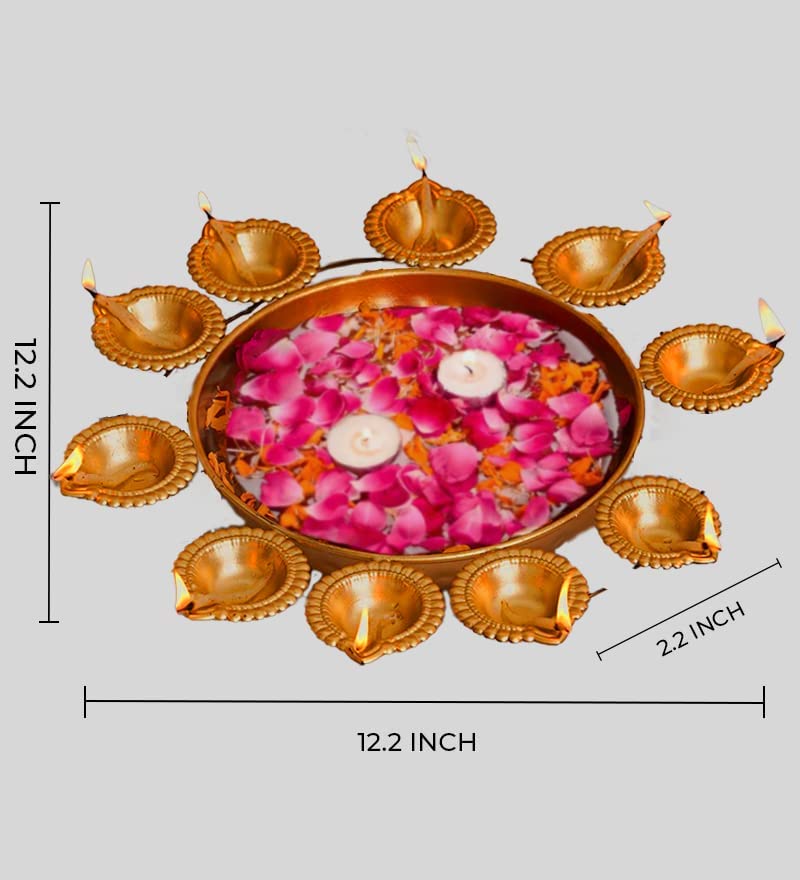 A Beautiful Urli Diya This Urli Diya is magnificent and is sure to add a subtle accent of sophistication to any event or any of your room or office space Add Grace To Events N Home Decor Create a beautiful Look by placing this tealight holder at weddings parties and family gatherings that offer a vintage but timeless look. A best Gift For You Consider this when planning to light; find that balance between functionality and personality. Add extraordinary detail to any room or home decor with this beautiful Decorative tealight holder