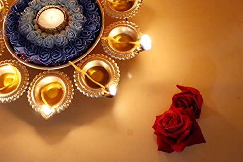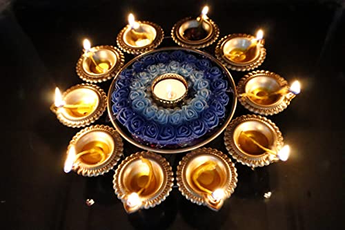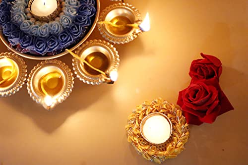 Illuminate your Diwali festivities with the exquisite Metal Floral Urli featuring a Floating Tea Light Holder a true embodiment of tradition and elegance. This Diwali Special Urli is designed to elevate your festive decor making it the perfect addition to your celebrations. Crafted with meticulous attention to detail this urli showcases intricate floral patterns and boasts a radiant golden finish seamlessly blending timeless charm with contemporary aesthetics. Its graceful design serves as a captivating centerpiece that will enchant your guests and family alike. What sets this urli apart is its built-in Floating Tea Light Holder allowing you to add a warm flickering glow to your surroundings. As you light up your favorite tea lights watch as the gentle ripples of water dance in the soft light creating an enchanting ambiance that captures the essence of Diwali. But this urli isn't just a decorative piece; it carries deep spiritual significance. It is the ideal vessel for holding colorful diyas during your Diwali Pooja creating a serene and sacred atmosphere for your prayers and rituals and infusing your home with positive energy. Looking for the perfect Diwali gift? Look no further! This urli is a thoughtful and heartfelt present that conveys your best wishes for prosperity happiness and spiritual abundance to your loved ones. Beyond Diwali this versatile urli serves as an exquisite home decor piece adding a touch of opulence and sophistication to any occasion be it a festive gathering or everyday decor. Embrace the rich traditions of Diwali with this remarkable Metal Floral Urli letting its radiant beauty light up your home and heart during the Festival of Lights. Celebrate tradition with a modern twist and make your Diwali celebrations truly memorable.